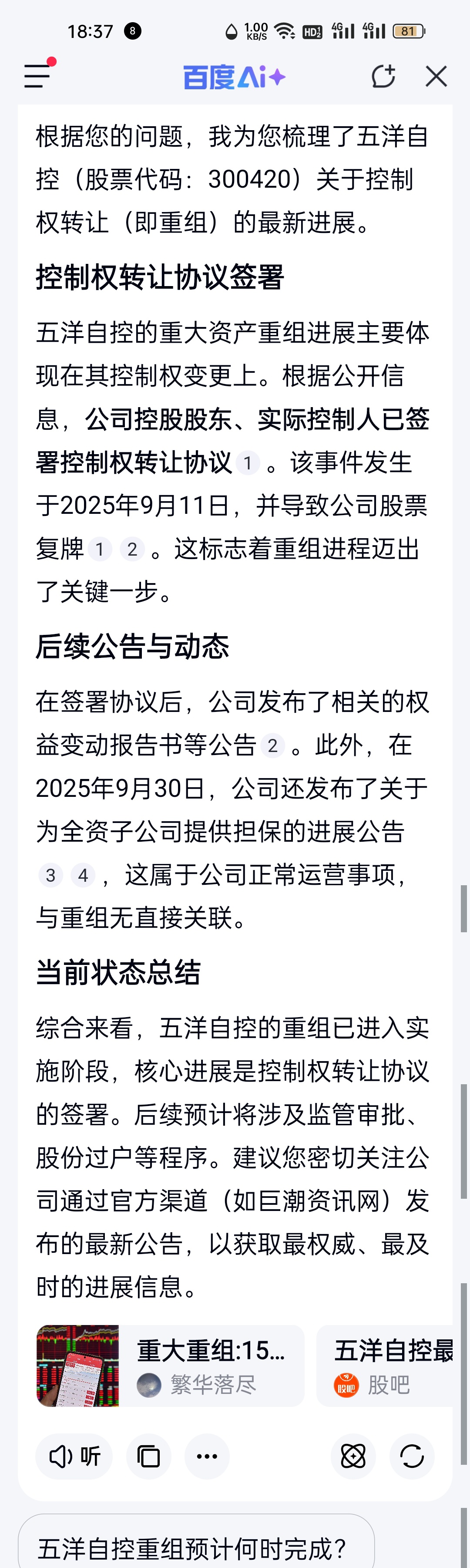 $创业板指(SZ399006)$ 300420五洋自控重组(控股权转让换帅)正在路上有加速进展,详看分析报告~