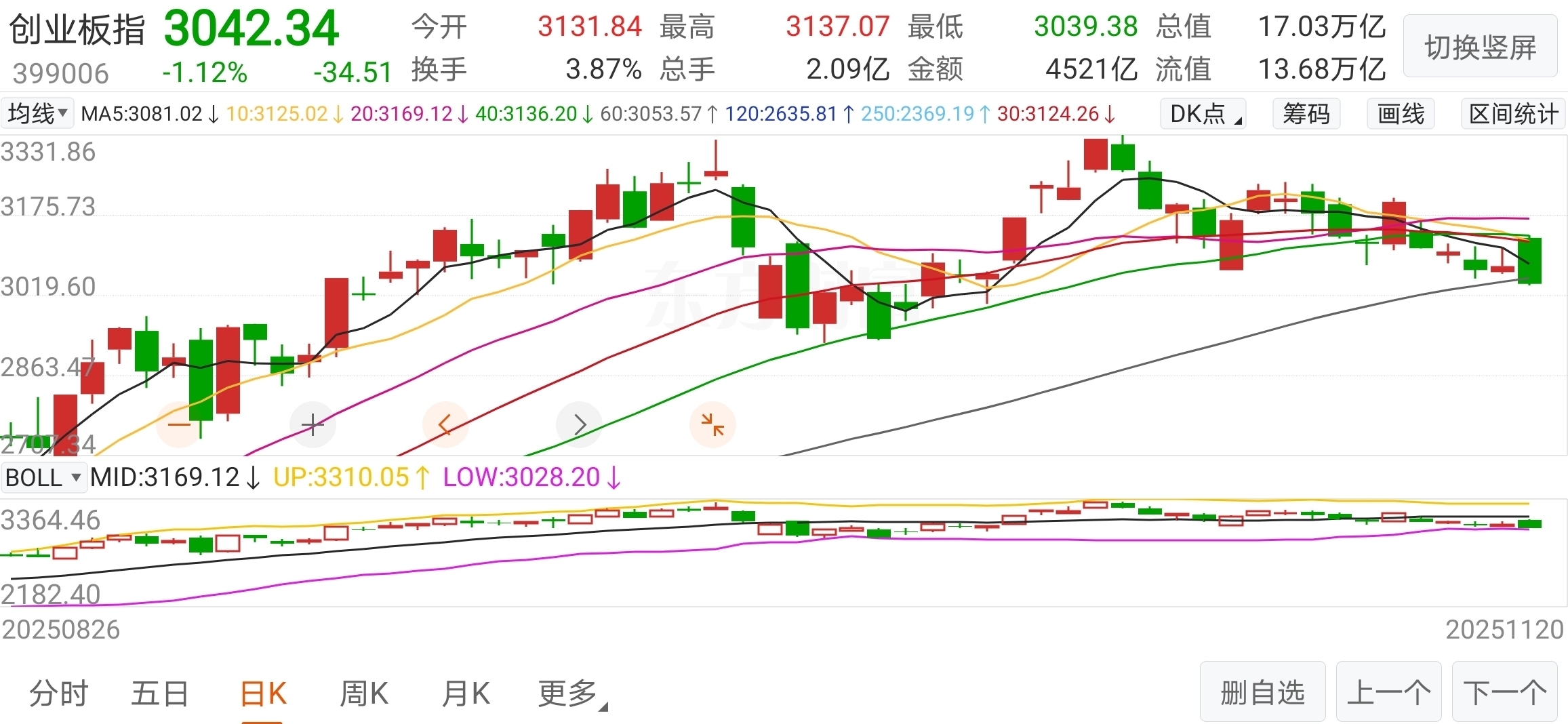 技术上大盘今天无论是上证指数,深成指,还是创业板指数,都已经下调到日布林线的下轨位置,成指已经跌破布林线下轨,上证和创业板也就差一两点!因此上证指数未来几天有可能展开小幅反弹!