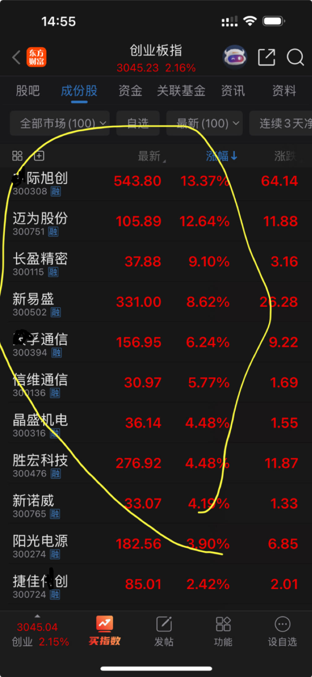 $创业板指(SZ399006)$ 上周几天跌这么惨,好不容易反弹3天,最后反弹最猛烈的却是这几个天价题材股,估计大多数持股股民,这3天没多少回血……