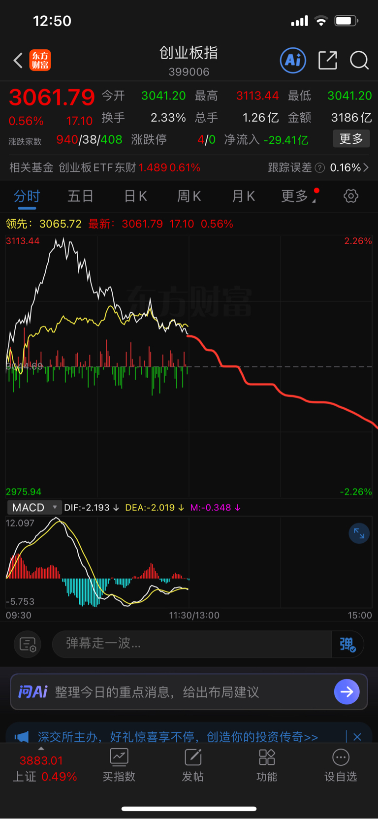 $创业板指(SZ399006)$ 走了,下午已经画好