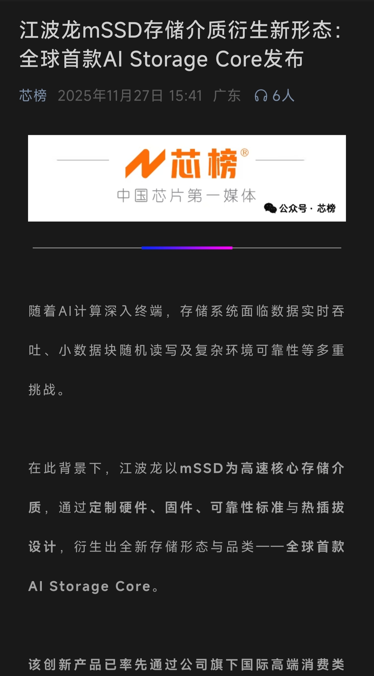 微信小程序今天刚登江波龙新款存储芯片产品详细五大功效介绍,为什么公司不发布呢?