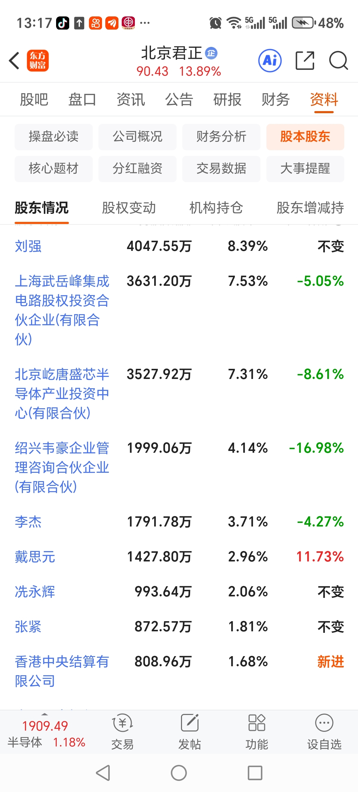 $创业板指(SZ399006)$ 中国半导体利润最高是豪威集团,股价最低也是豪威集团