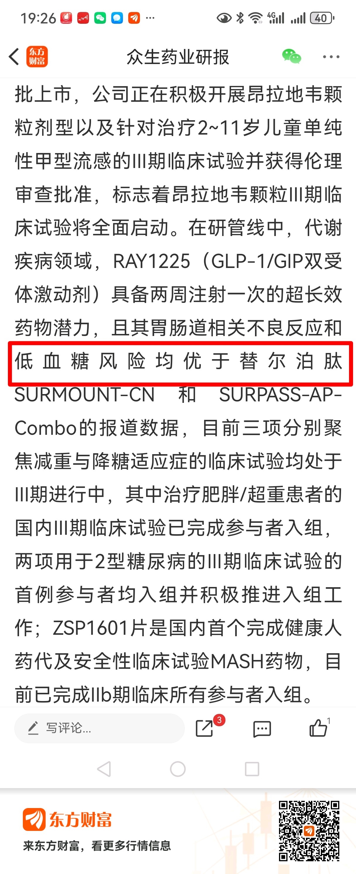 爆料!在研管线中,代谢疾病领域,RAY1225(GLP-1/GIP双受体激动剂)具备两周注射一次的超长效药物潜力,且其胃肠道相关不良反应和低血糖风险均优于替尔泊肽SURMOUNT-CN和SURPASS-AP-Combo的报道数据,目前三项分别聚焦减重与降糖适应症的临床试验均处于III期进行中,其中治疗肥胖/超重患者的国内III期临床试验已完成参与者入组,两项用于2型糖尿病的III期临床试验的首例参与者均入组并积极推进入组工作;ZSP1601片是国内首个完成健康人药代及安全性临床试验MASH药物,目前已完成Ⅱb期临床所有参与者入组。