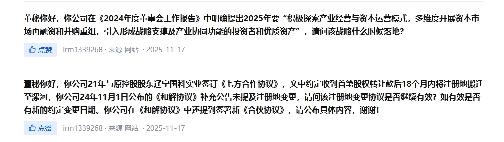 荣科科技在2025年12月5日的互动平台回应中表示,公司正通过优化业务结构、强化回款管理等举措积极改善经营,并“全力推进此前提出的产业与资本协同战略”。这表明公司仍重视该战略的实施,但未明确提及资本重组(如并购、资产注入等)的具体时间表或进展。
