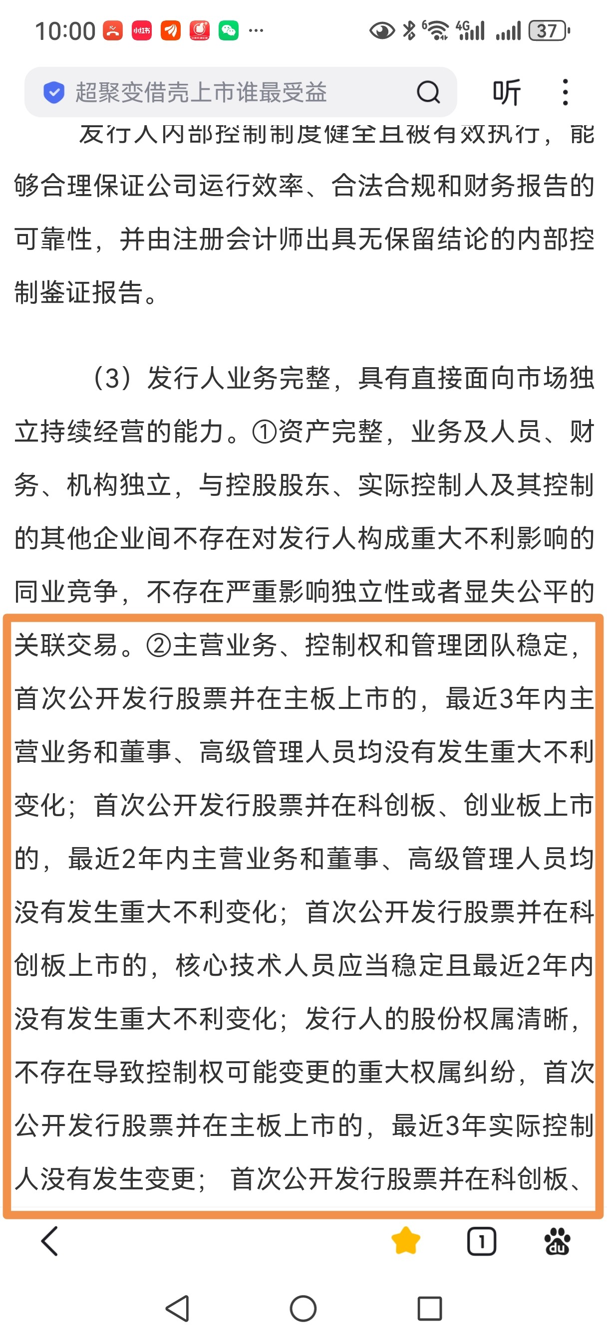 (3)发行人业务完整,具有直接面向市场独立持续经营的能力。资产完整,业务及人员、财务、机构独立,与控股股东、实际控制人及其控制的其他企业间不存在对发行人构成重大不利影响的同业竞争,不存在严重影响独立性或者显失公平的关联交易。主营业务、控制权和管理团队稳定,首次公开发行股票并在主板上市的,最近3年内主营业务和董事、高级管理人员均没有发生重大不利变化;首次公开发行股票并在科创板、创业板上市的,最近2年内主营业务和董事、高级管理人员均没有发生重大不利变化;首次公开发行股票并在科创板上市的,核心技术人员应当稳定且最近2年内没有发生重大不利变化;发行人的股份权属清晰,不存在导致控制权可能变更的重大权属纠纷,首次公开发行股票并在主板上市的,最近3年实际控制人没有发生变更; 首次公开发行股票并在科创板、创业板上市的,最近2年实际控制人没有发生变更。不存在涉及主要资产、核心技术、商标等的重大权属纠纷,重大偿债风险,重大担保、诉讼、仲裁等或有事项,经营环境已经或者将要发生重大变化等对持续经营有重大不利影响的事项。