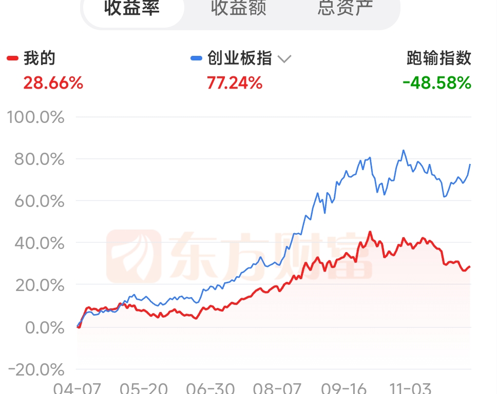 $创业板指(SZ399006)$ 有人比我菜的吗,还没跑过指数一半