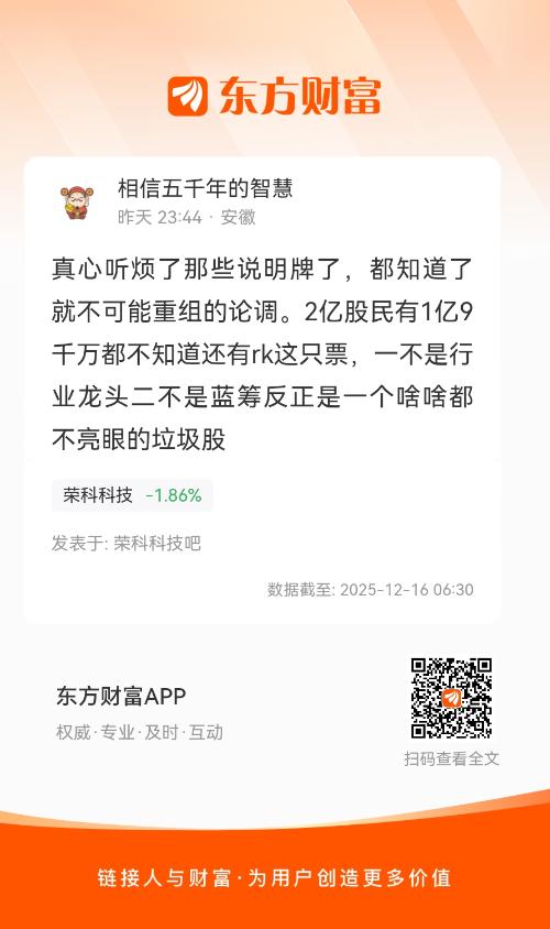 真心听烦了那些说明牌了,都知道了就不可能重组的论调。2亿股民有1亿9千万都不知道还有rk这只票,一不是行业龙头二不是蓝筹反正是一个啥啥都不亮眼的垃圾股