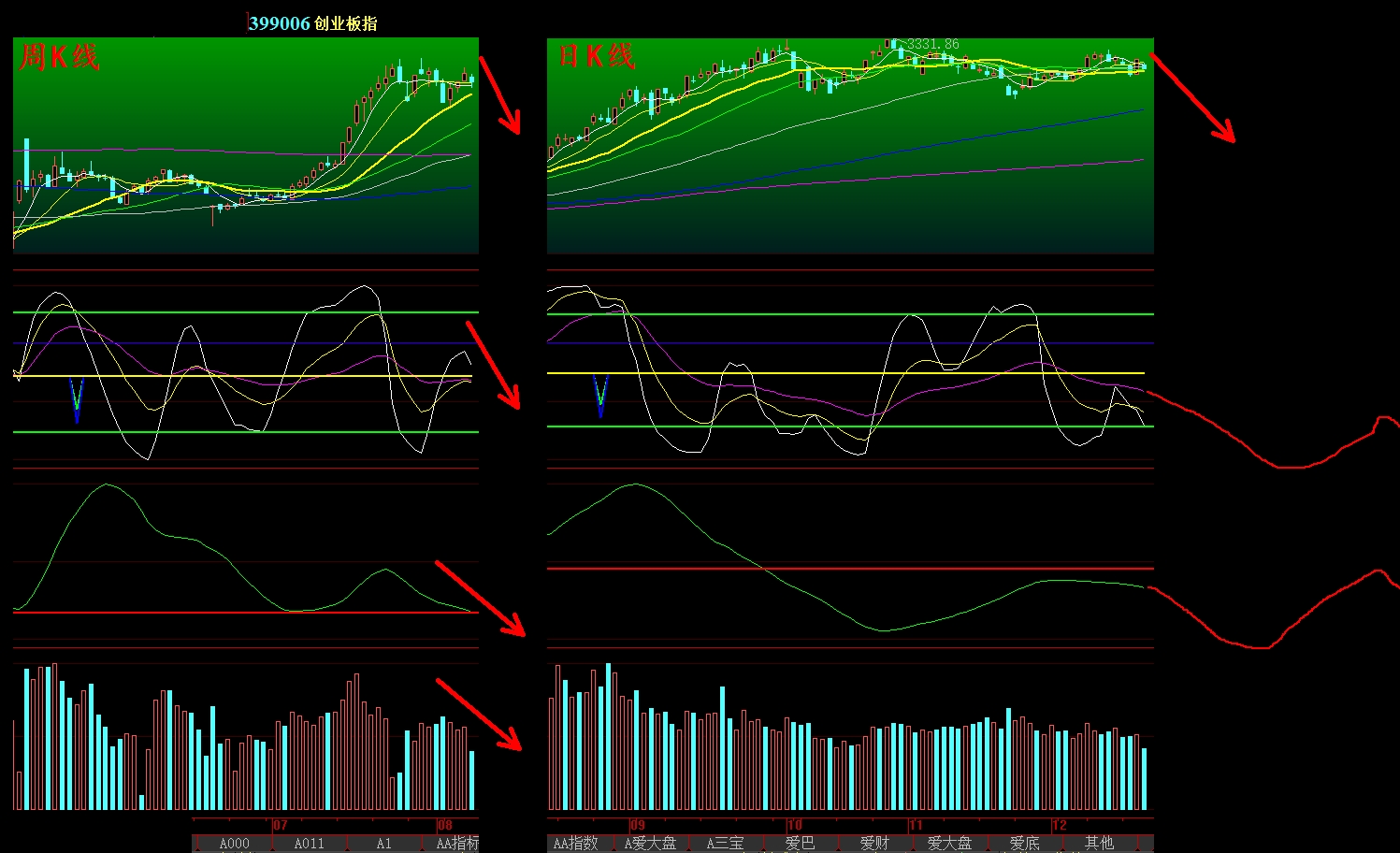 $创业板指(SZ399006)$ 成交量趋势线还在向下,没戏