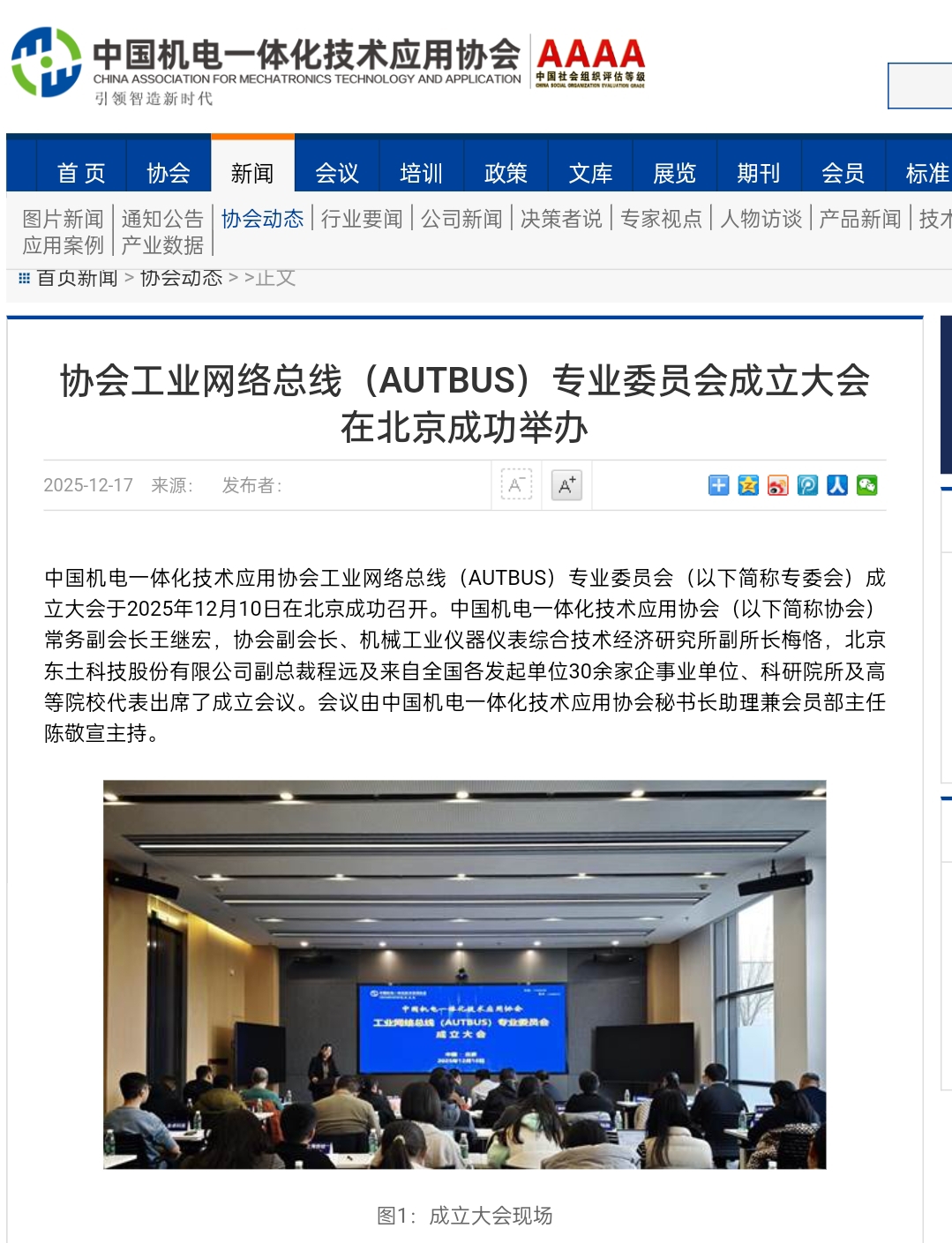 [中国机电一体化技术应用协会设立的]工业网络总线AUTBUS专业委员会(2025年)