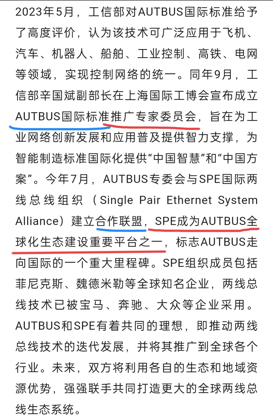$创业板指(SZ399006)$ [AUTBUS国际标准]该系列标准解决了IPv6统一寻址和确定性通信问题,实现了信息技术(IT)协议与操作技术(OT)协议的全IP化,支持工业通信领域多协议的互联互通互操作,以及控制数据、视频、图片等大数据在控制层的同步宽带传输,可有效满足智能制造高带宽、高实时等通信需求。目前,基于该系列标准的芯片已研制成功,可广泛应用于机器人、汽车、船舶、航空等智能制造相关领域。