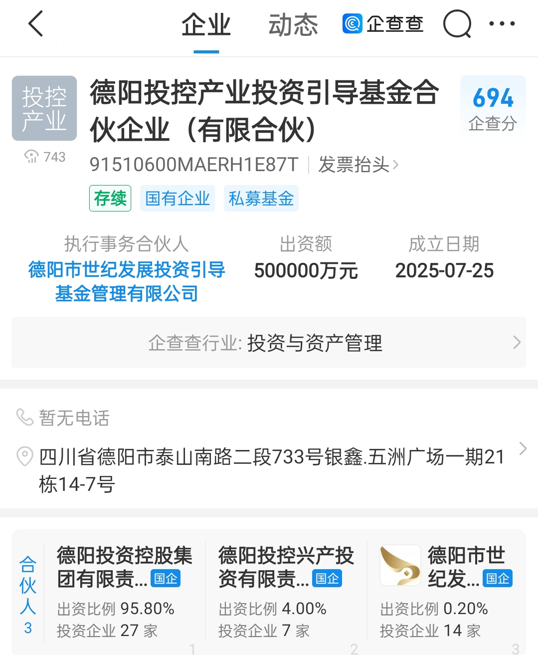 成德基金,成都与德阳合称之意。全称四川成德高新科创股权投资基金(有限合伙)[投资领域]。