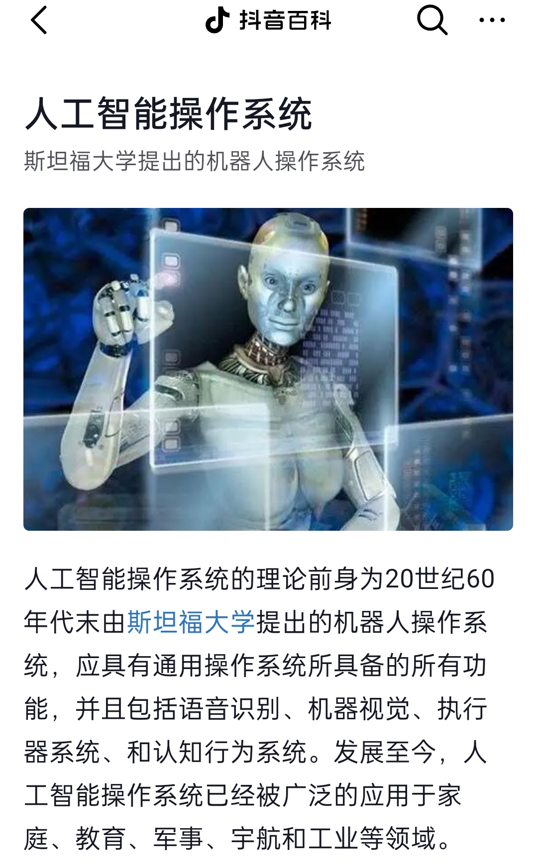 人工智能操作系统的实时性特点还使它能广泛应用于军事、宇航和工业领域,如战场机器人、空中机器人、水下机器人、空间机器人、农林机器人、建筑机器人、搜救机器人、采矿机器人、危险作业机器人、工业机器人、智能车辆以及无人机等等。