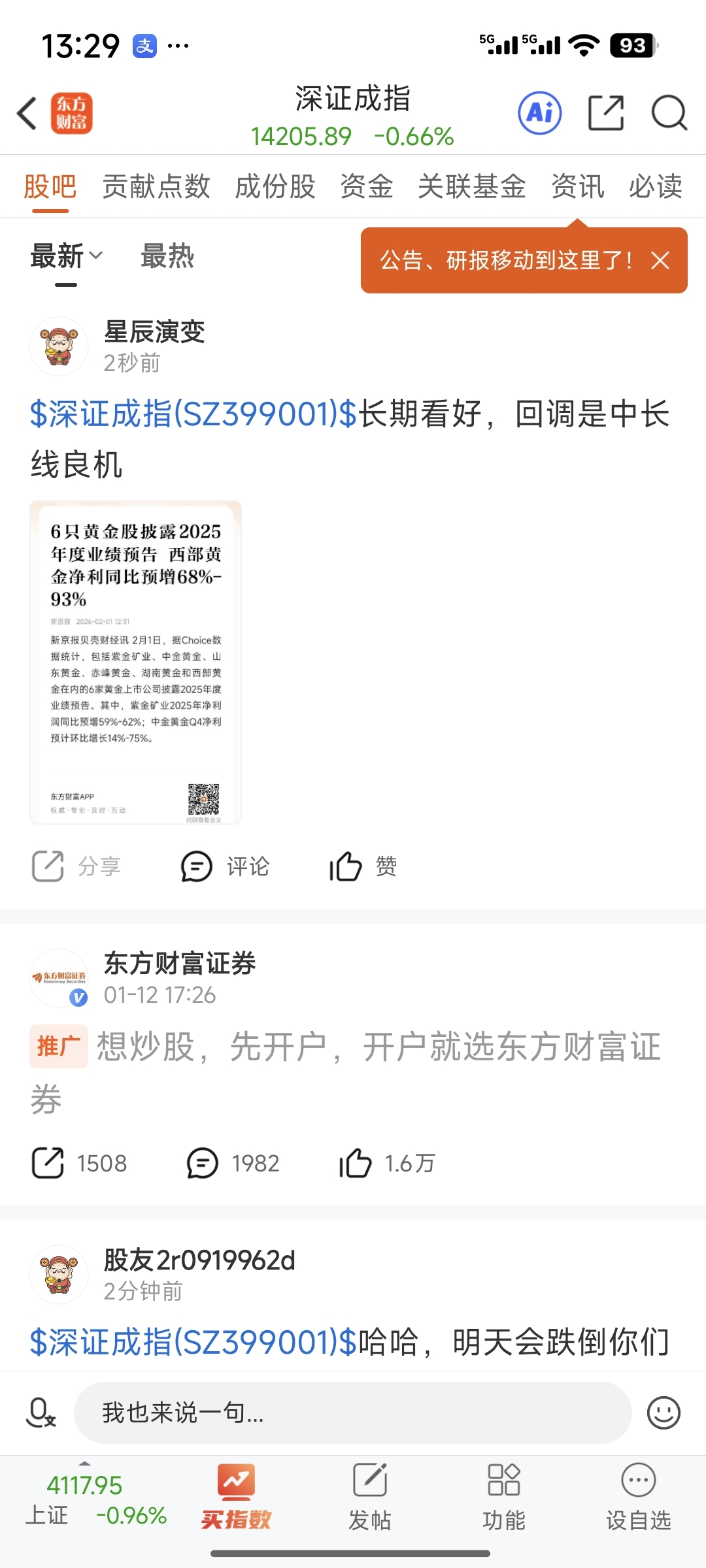 温馨提示: 1.根据《证券法》规定,禁止编造、传播虚假信息或者误导性信息,扰乱证券市场;2.用户在本社区发表的所有资料、言论等仅代表个人观点,与本网站立场无关,不对您构成任何投资建议。用户应基于自己的独立判断,自行决定证券投资并承担相应风险。《东方财富社区管理规定》