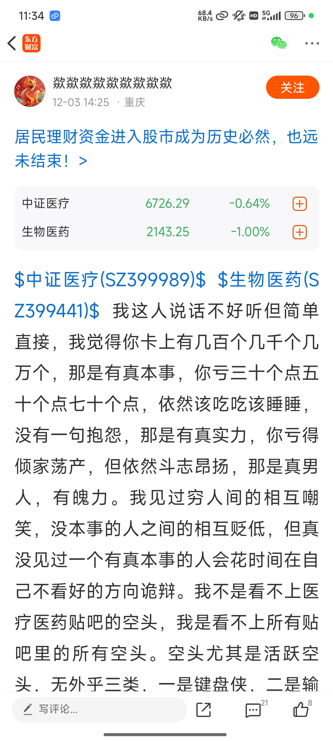 $生物医药(SZ399441)$ $中证医疗(SZ399989)$ 最爱听医疗大神不好听且直接的话