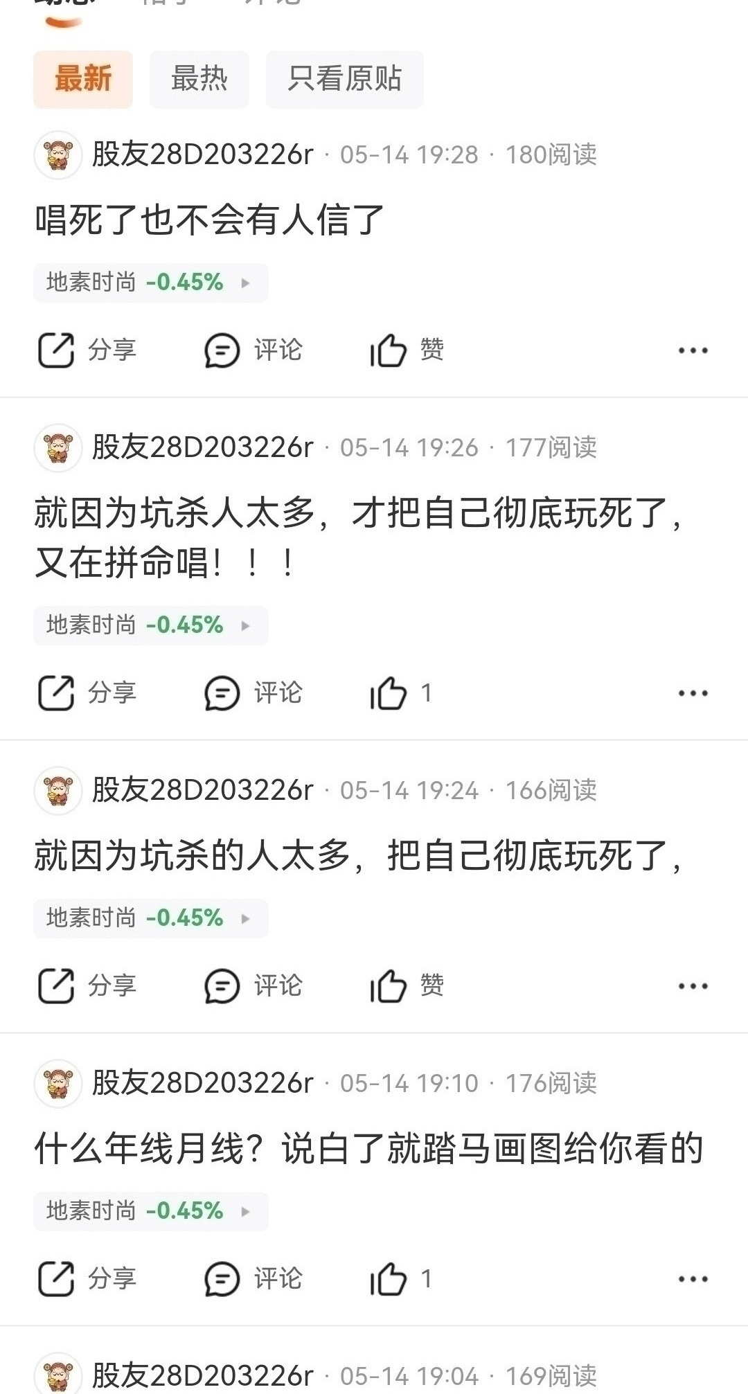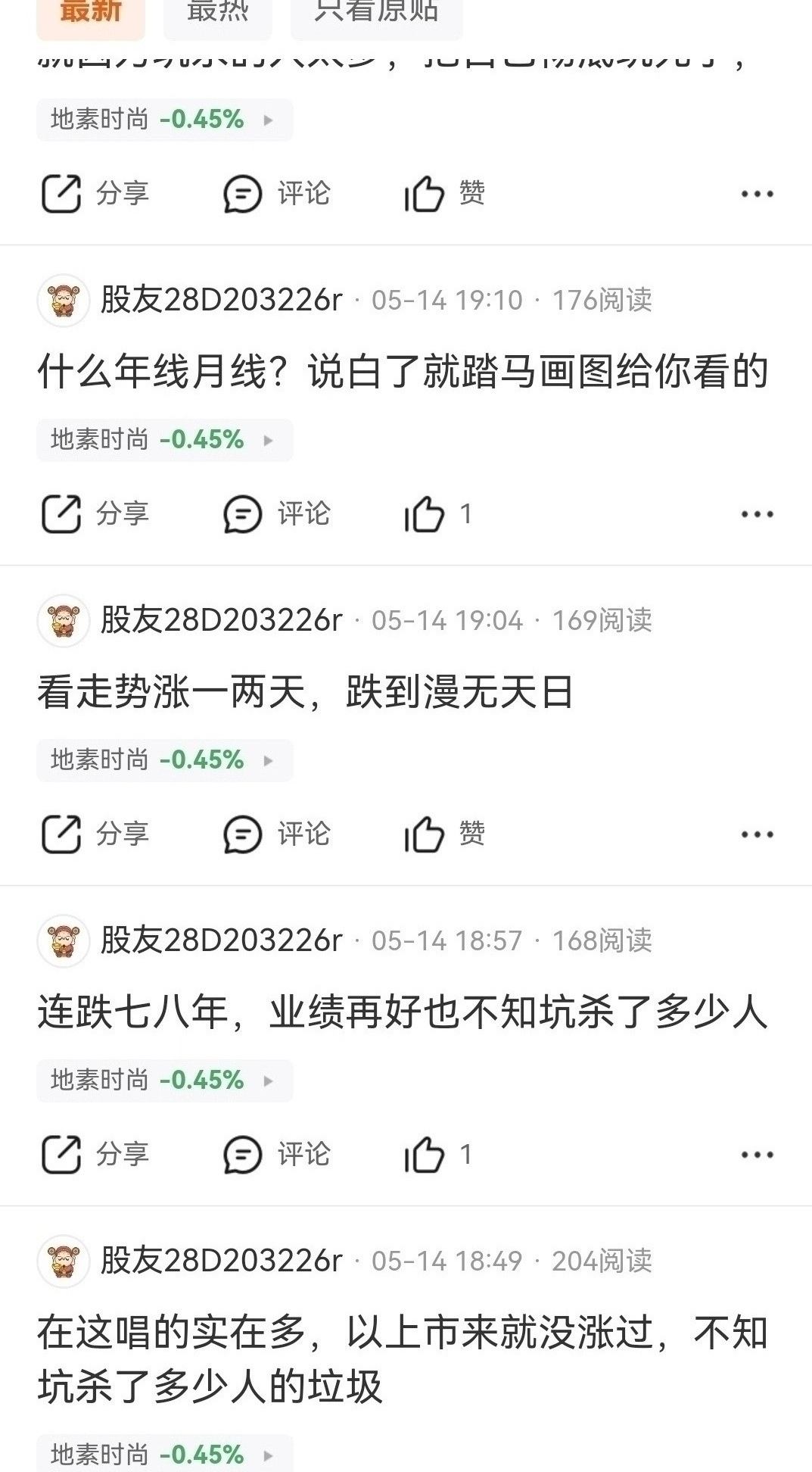 $深港通服装纺织R(SZ483041)$ $地素时尚(SH603587)$ 季线底部中长线至少几倍涨幅,今年周线上涨趋势结束前至少翻倍,底部踏空后唱空的都是同一批账号,破坏投资环境坚决抵制打击,股票有股票走势结构趋势,底部唱空没有意义的