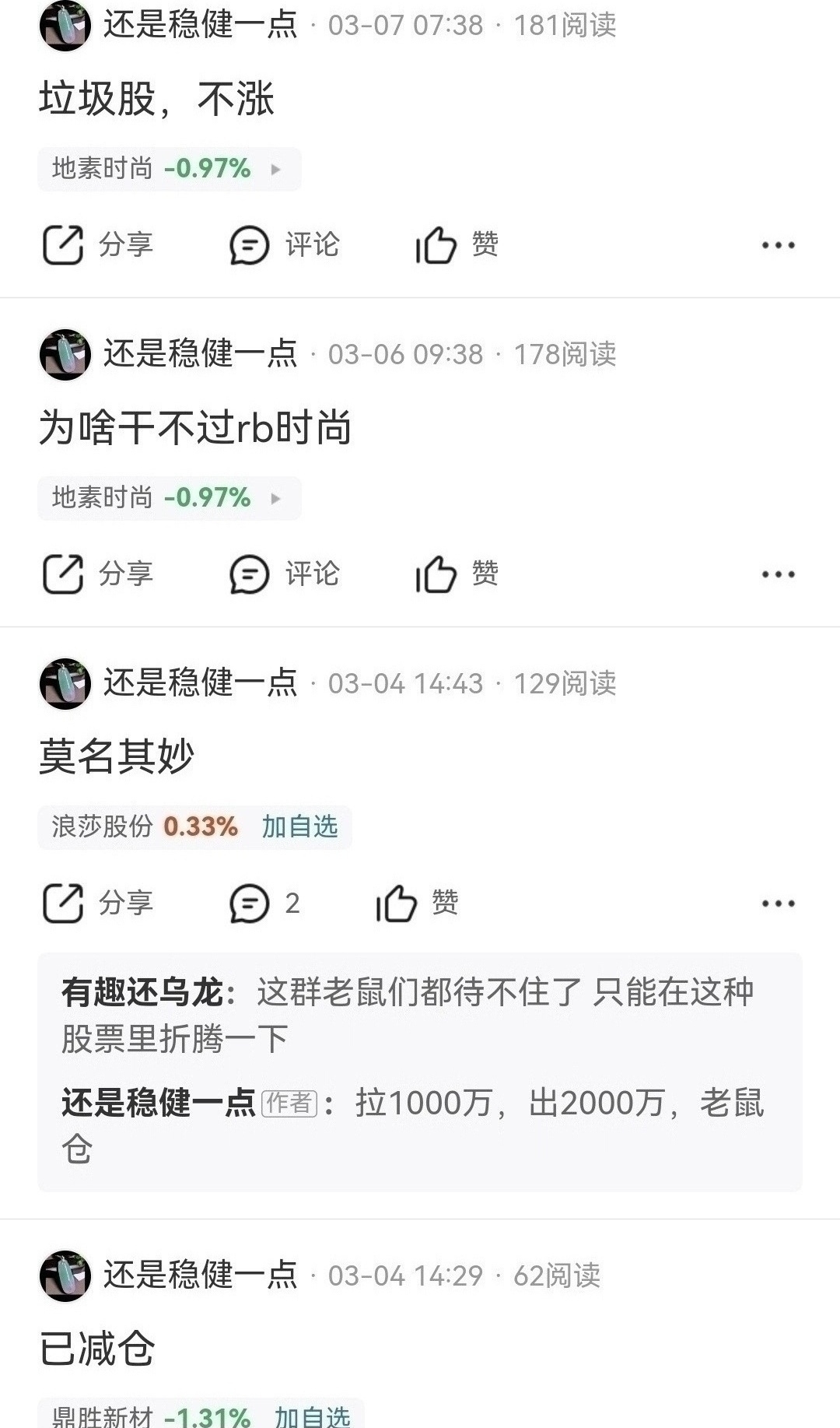 $深港通服装纺织R(SZ483041)$ $地素时尚(SH603587)$ 季线底部中长线至少几倍涨幅,周线上涨趋势短线补涨至少翻倍,地素回调到六月低点,大盘服装板块相对于六月低点涨幅百分之十五以上,短线补涨空间可观,黑嘴也是山东ip还是稳健一点,底部唱空攻击人没有必要,破坏投资环境坚决抵制打击这种行为