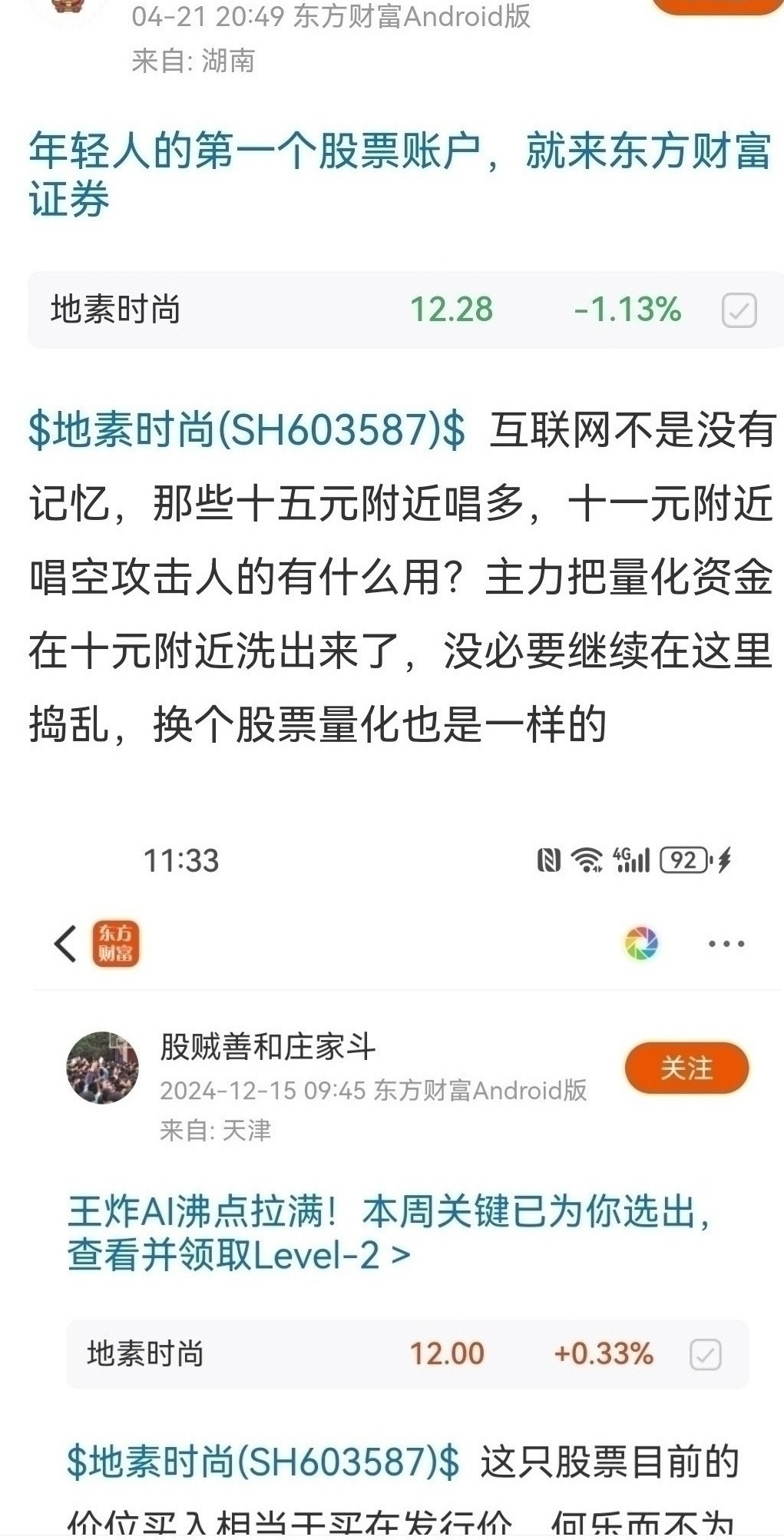 $深港通服装纺织R(SZ483041)$ $地素时尚(SH603587)$ 季线底部中长线至少几倍涨幅,底部踏空后唱空没有意义,周线上涨趋势今年翻倍,底部踏空后唱空的都是同一批账号,这种行为破坏投资环境坚决抵制打击这种行为