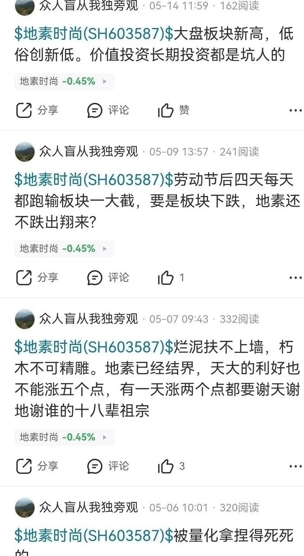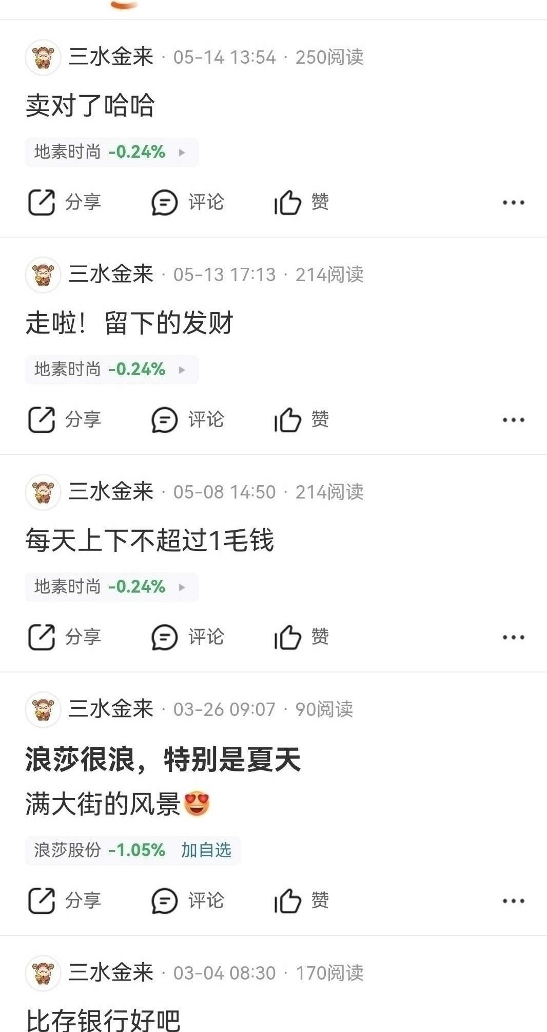 $深港通服装纺织R(SZ483041)$ $地素时尚(SH603587)$ 季线底部中长线至少几倍涨幅,北向资金去年九月十元附近清仓卖出踏空,今年六月加入沪港通才能买,踏空后唱空没有意义,光芒万丈也是三水金来的号,破坏投资环境没有意义,周线上涨趋势今年至少翻倍,目前服装板块平均市盈率七十多倍