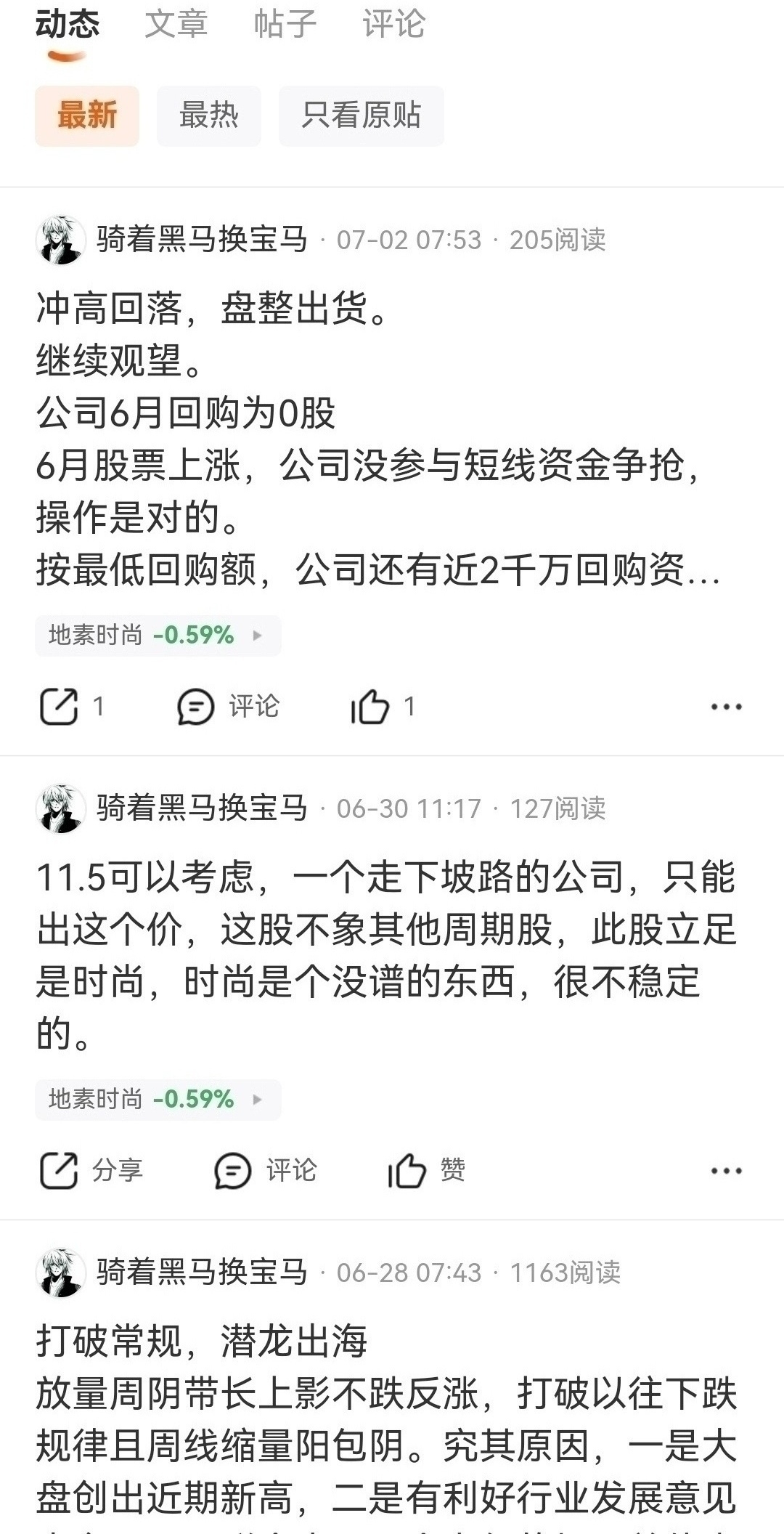 $深港通服装纺织R(SZ483041)$ $地素时尚(SH603587)$ 季线底部月线上涨,和服装板块走势结构一样,踏空的只有去年九月十元附近清仓卖出的北向资金,今年六月加入沪港通北向资金才可以买入,底部踏空后唱空没有意义,服装板块平均市盈率八十倍左右,从去年低点涨幅已经翻倍,地素周线第五浪主升今年补涨也会翻倍,股票有股票的走势结构和趋势