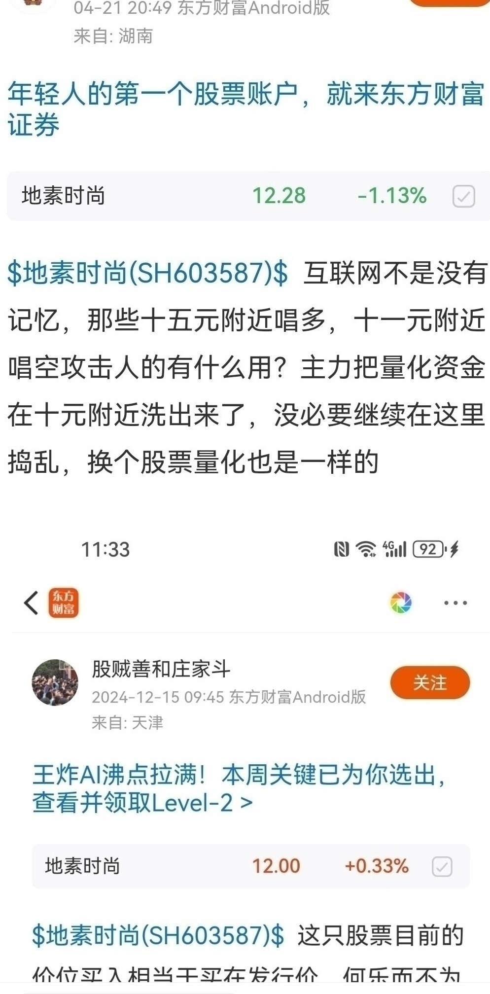 $深港通服装纺织R(SZ483041)$ $地素时尚(SH603587)$ 季线底部年利润稳定三亿以上,现金资产三十多亿,中长线至少十倍涨幅,周线第五浪主升补涨今年至少翻倍,服装板块平均市盈率七十多倍,北向资金去年九月十元附近清仓卖出踏空,北向托又出来唱空攻击人没有意义,补涨空间可观