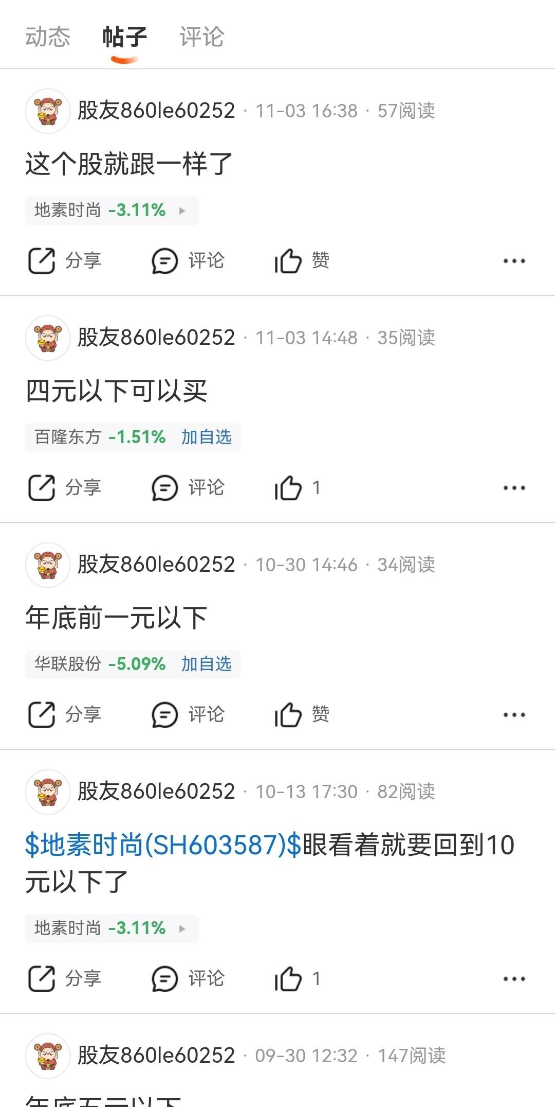$深港通服装纺织R(SZ483041)$ $地素时尚(SH603587)$ 季线底部绩优企业,周线第五浪主升补涨今年至少翻倍,服装板块从去年低点涨幅翻倍,北向托又出来唱空攻击人没有意义,北向资金去年九月十元附近清仓卖出踏空,今年六月加入沪港通才可以买,踏空后没必要破坏投资环境坚决抵制打击这种行为