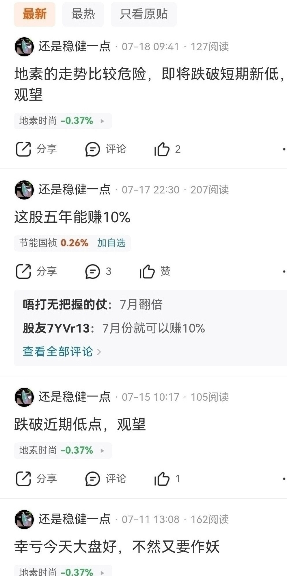 温馨提示: 1.根据《证券法》规定,禁止编造、传播虚假信息或者误导性信息,扰乱证券市场;2.用户在本社区发表的所有资料、言论等仅代表个人观点,与本网站立场无关,不对您构成任何投资建议。用户应基于自己的独立判断,自行决定证券投资并承担相应风险。《东方财富社区管理规定》