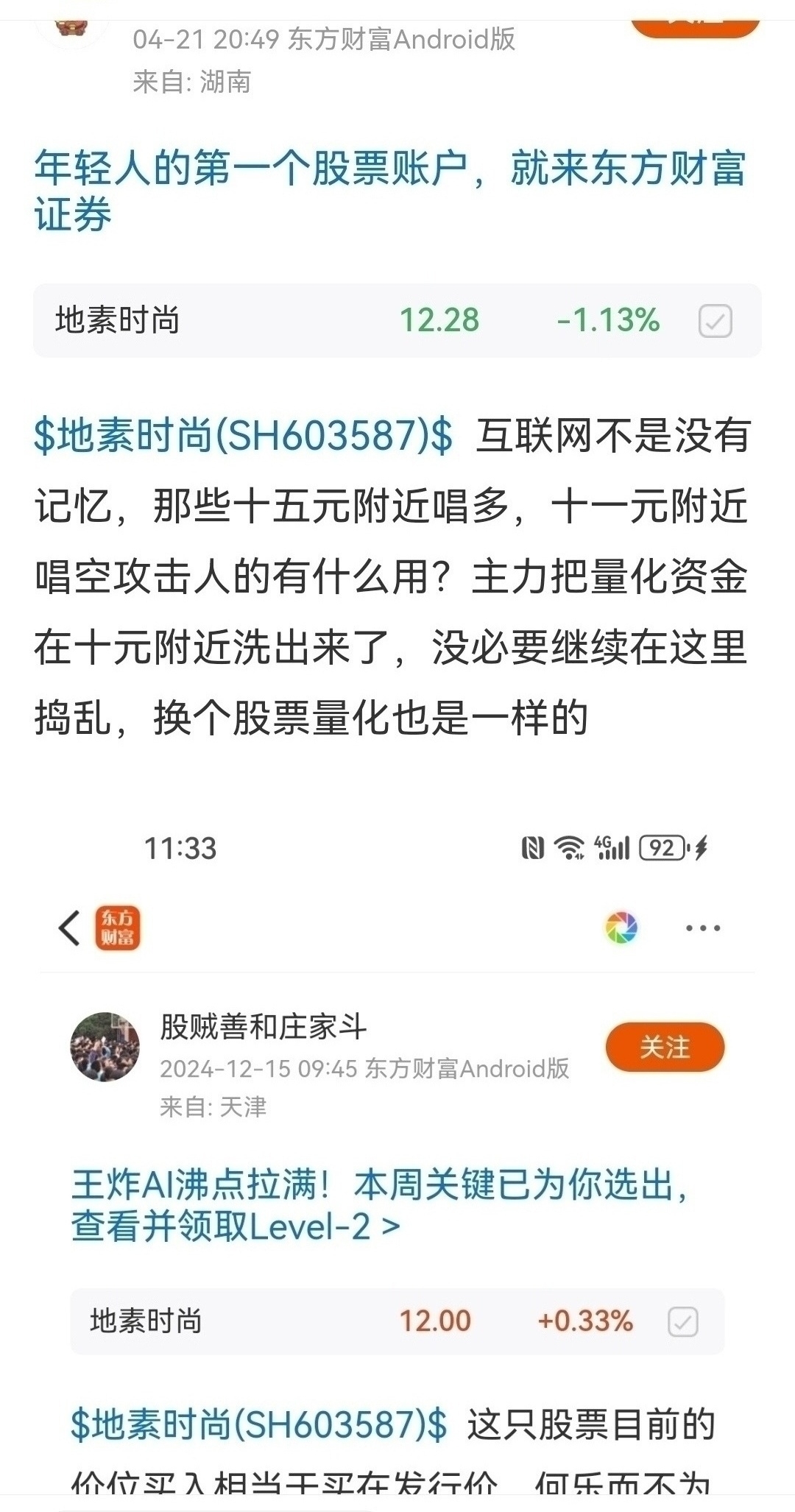 $深港通服装纺织R(港币)(SZ483042)$ $地素时尚(SH603587)$ 季线底部中长线几倍涨幅以上,周线上涨趋势今年结束前至少翻倍,卖在今年四月十一元附近没必要在这里唱空攻击人捣乱,这个注册几天的天津ip也是股贼善和庄家斗,破坏投资环境坚决抵制打击这种行为