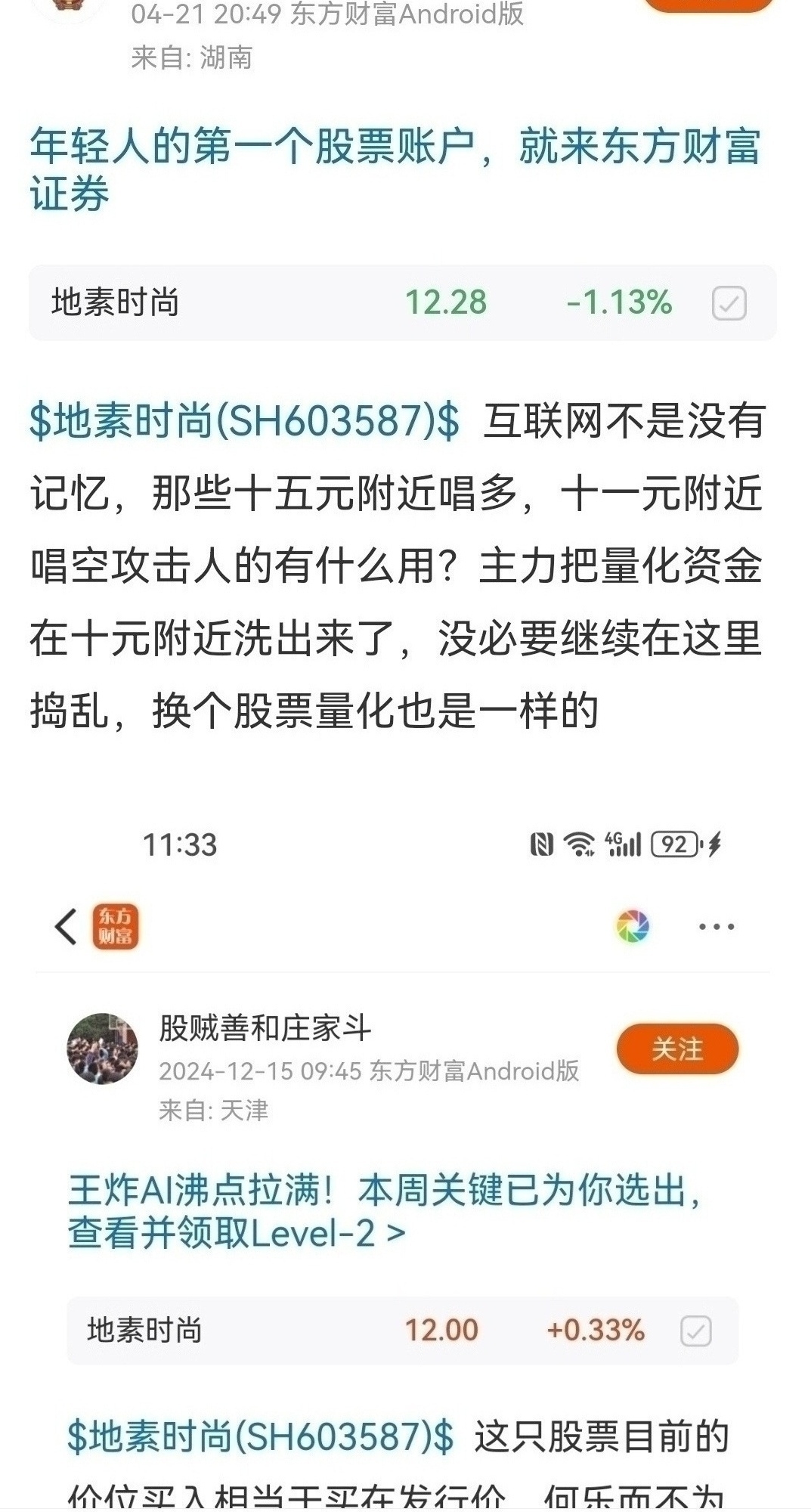 $深港通服装纺织R(港币)(SZ483042)$ $地素时尚(SH603587)$ 季线底部中长线至少几倍涨幅,周线上涨趋势今年翻倍,月线仙人指路,短线突破今年新高,今年四月十一元附近卖出踏空后没必要在这里唱空攻击人破坏投资环境,没有意义,股票有股票的走势结构趋势