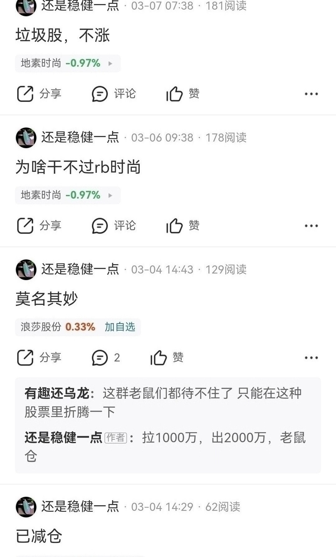 $深港通服装纺织R(港币)(SZ483042)$ $地素时尚(SH603587)$ 季线底部周线上涨趋势,短线今年翻倍,中长线十倍涨幅以上,底部踏空后唱空没有意义,山东黑嘴也是还是稳健一点,底部唱空攻击人破坏投资环境,周线第五浪开启买入拿稳了