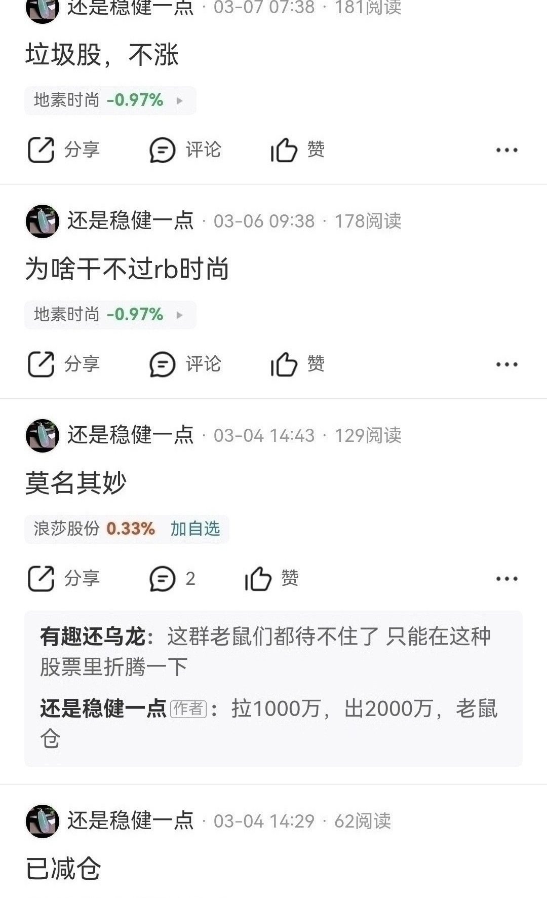 $深港通服装纺织R(港币(SZ483042)$ $地素时尚(SH603587)$ 季线底部中长线至少几倍涨幅,周线上涨趋势今年结束前至少翻倍,底部踏空后没必要在这里唱空攻击人,黑嘴也是还是稳健一点的账号,破坏投资环境坚决抵制打击这种行为,股票有股票的走势结构趋势
