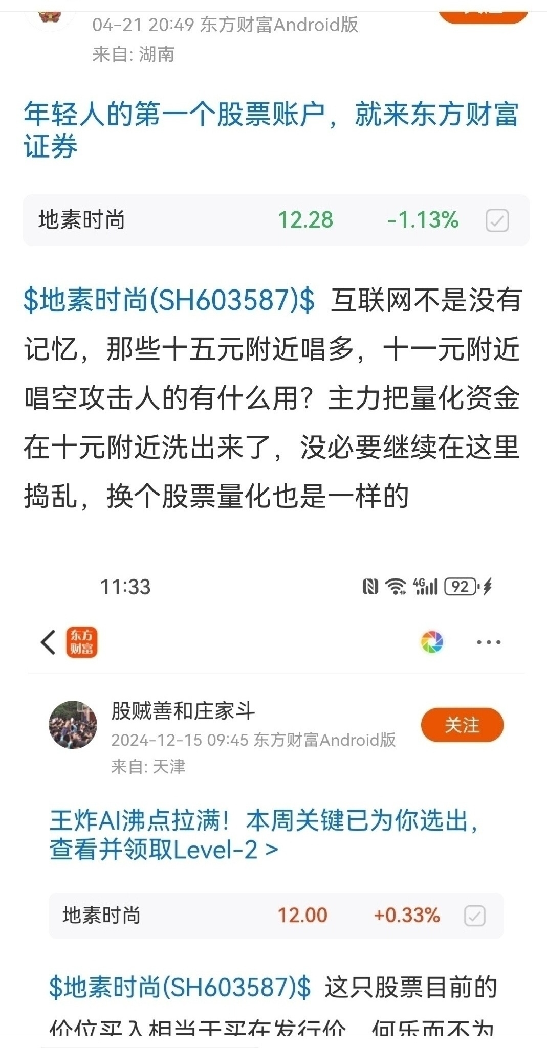 $深港通服装纺织R(港币)(SZ483042)$ $地素时尚(SH603587)$ 季线底部中长线至少十倍涨幅,周线上涨趋势今年至少翻倍,服装板块平均市盈率七十多倍,底部踏空后唱空没有意义,互联网不是没有记忆,去年十二月十五元附近唱多,今年四月十一元附近唱空,破坏投资环境坚决抵制打击这种行为