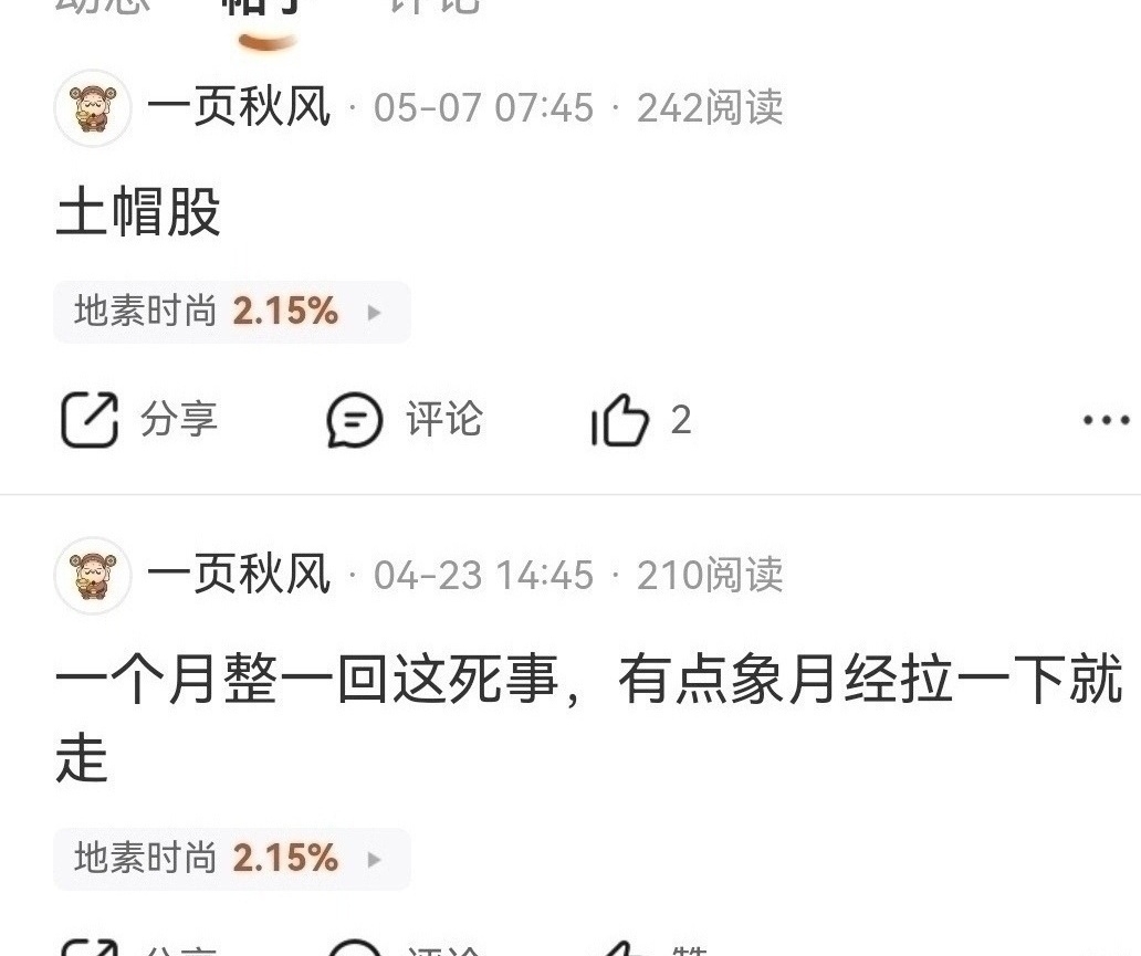 $深港通服装纺织R(港币)(SZ483042)$ $地素时尚(SH603587)$ 首发经济谷子经济概念,和泡泡玛特合作业绩反转,季线大底绩优企业,中长线至少十倍涨幅,周线第五浪主升补涨也至少今年翻倍,北向资金去年九月十元附近清仓卖出踏空,今年六月加入沪港通才可以买入,北向托又出来唱空攻击人没有意义,扩内需消费股的中长线上涨趋势,服装板块平均市盈率八十倍左右,补涨空间可观