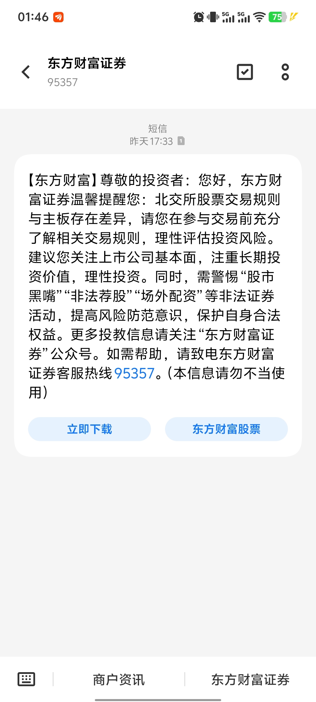 $北证50(SZ899050)$ 今天盘后东方财富给我发了这个信息,是什么意思,是好是坏,是给我提示风险??让我从北交所撤退吗?
