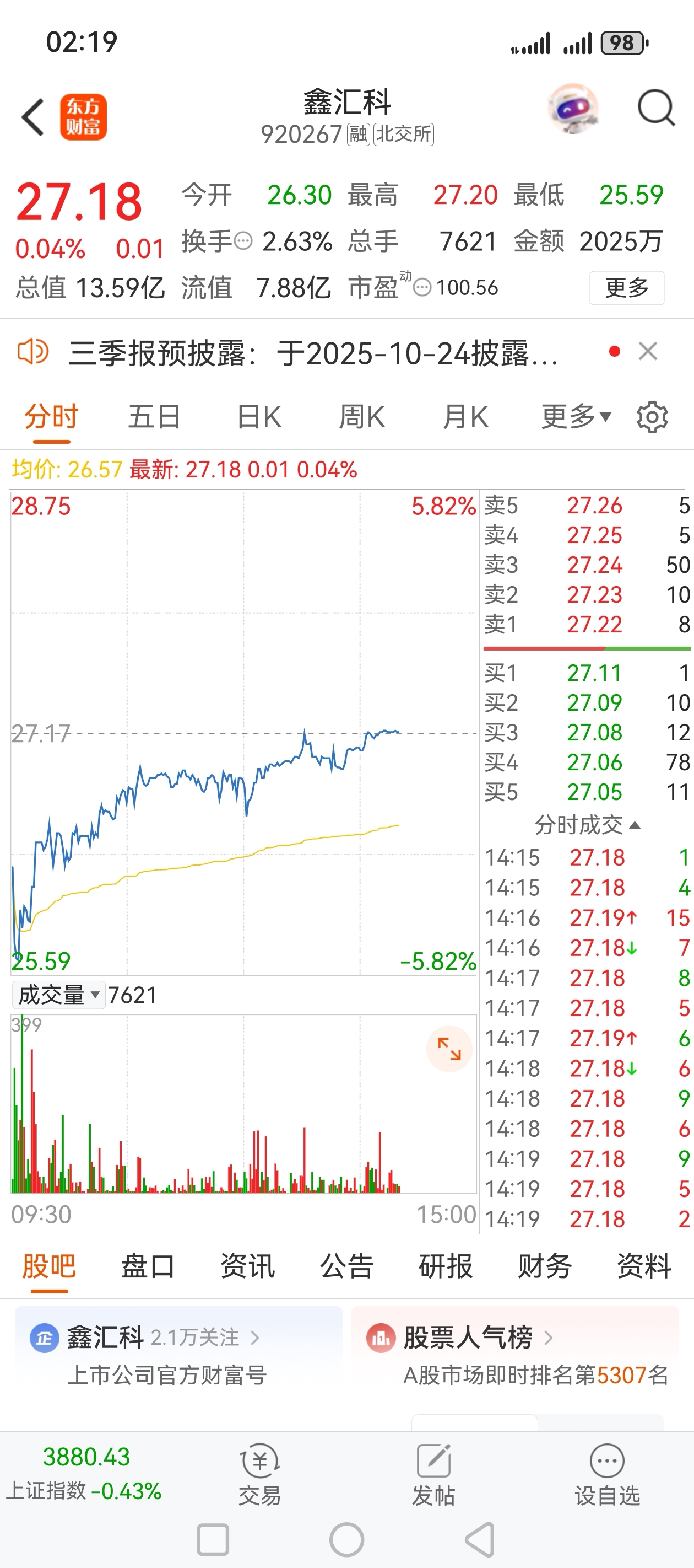 $北证50(SZ899050)$ 同志们预测一哈收盘能到多少?