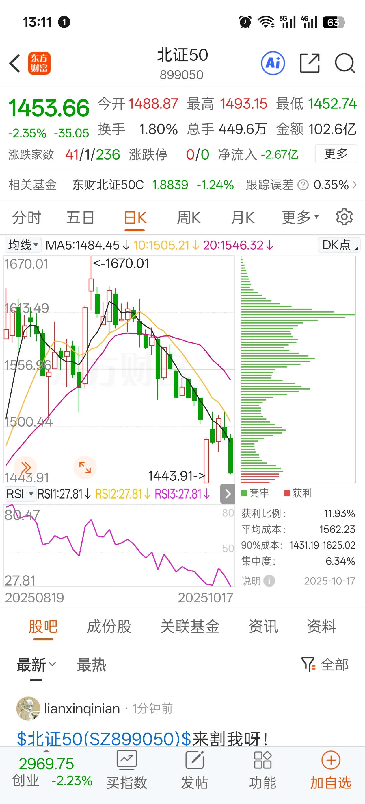 $北证50(SZ899050)$ 北正我记得以前长的时候多。现在就一直下跌。我估计牛市已经结束了。北证都撑不住了,上证更不行。