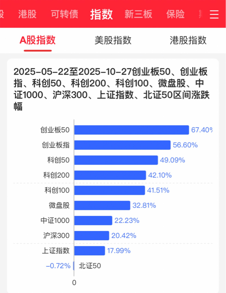 特大牛市5月下旬北交加速发新股以来,各主要指数增幅。