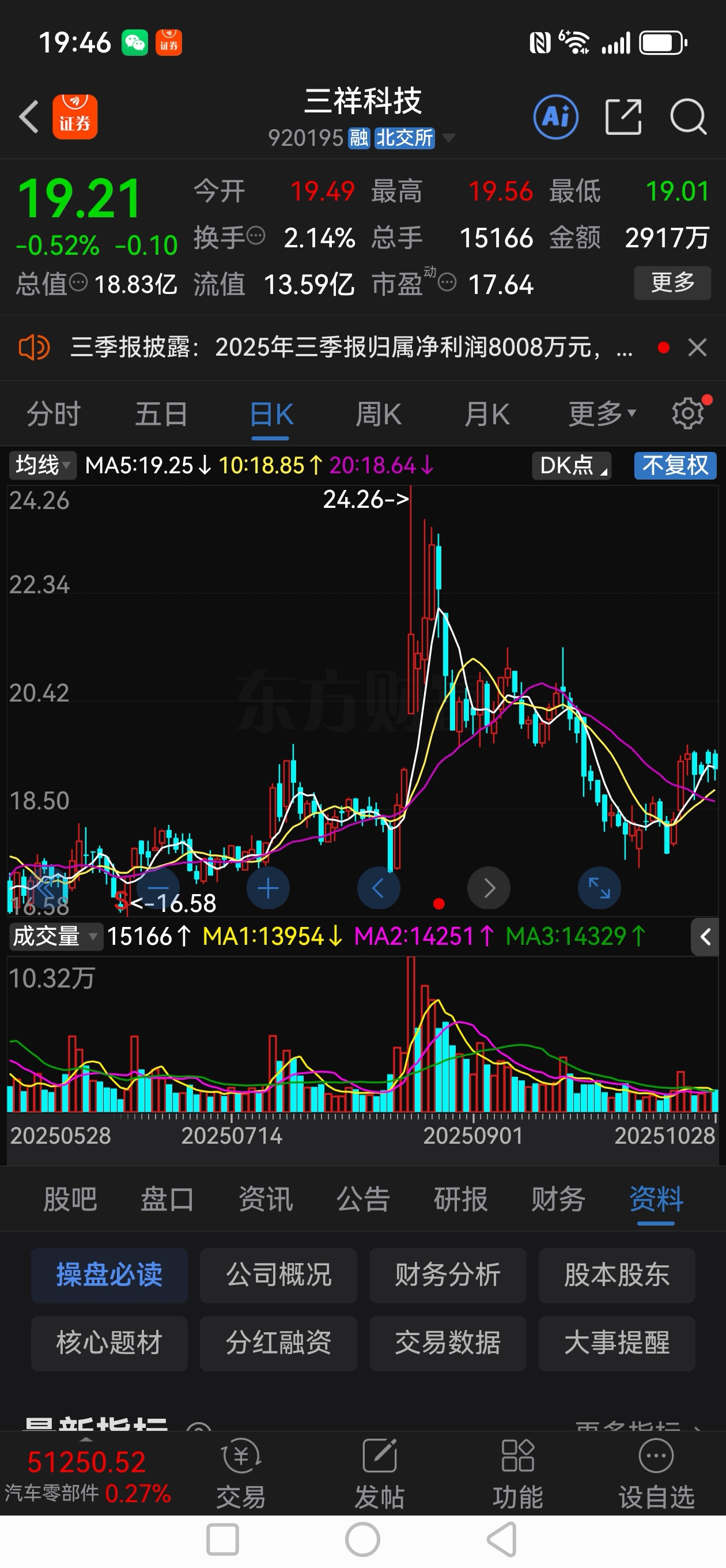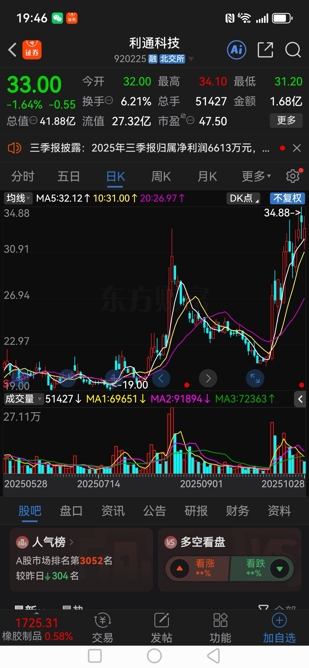 $北证50(SZ899050)$ $三祥科技(SZ920195)$ $利通科技(SZ920225)$ 百思不得其解?这么好的业绩三祥科技(0.81元)!山东、青岛本地人对三祥不感兴趣?看看行业相近的河南股利通科技(0.52元)股价在33元!三祥科技在北交所称得上高业绩绩优股,如在沪深两市股价至少在30一40元!可怜的三祥科技只值19.21元?!近三年长期低迷,没什么大涨过?