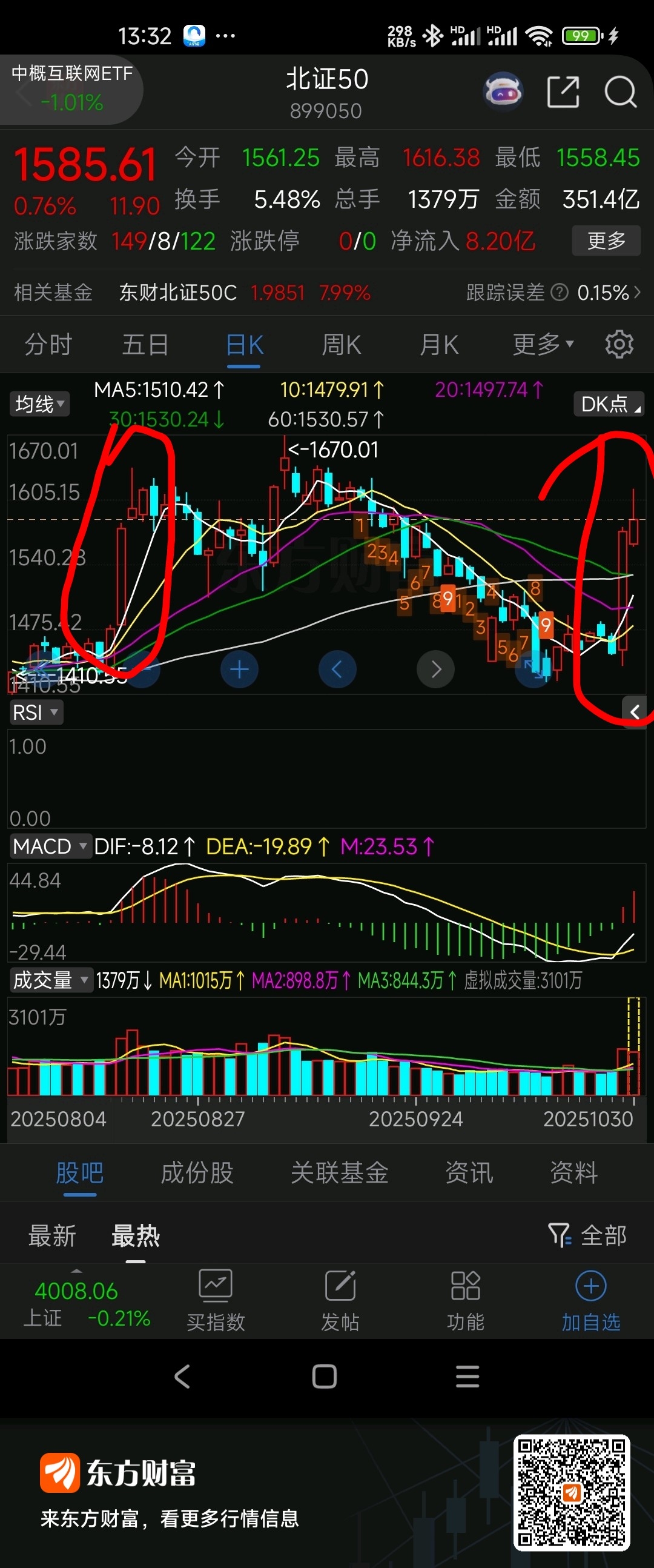 $北证50(SZ899050)$ 一个吊样