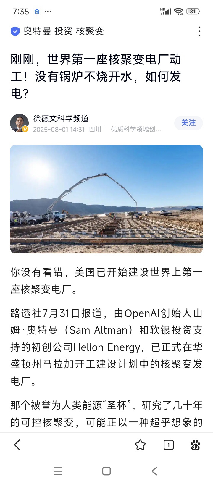 $北证50(SZ899050)$ $辰光医疗(SZ920300)$ 国际核能产业创新博览会,AI的底层逻辑最终指向电力,由OpenAI创始人山姆·奥特曼(Sam Altman)和软银投资支持的初创公司Helion Energy,已正式在华盛顿州马拉加开工建设计划中的核聚变发电厂