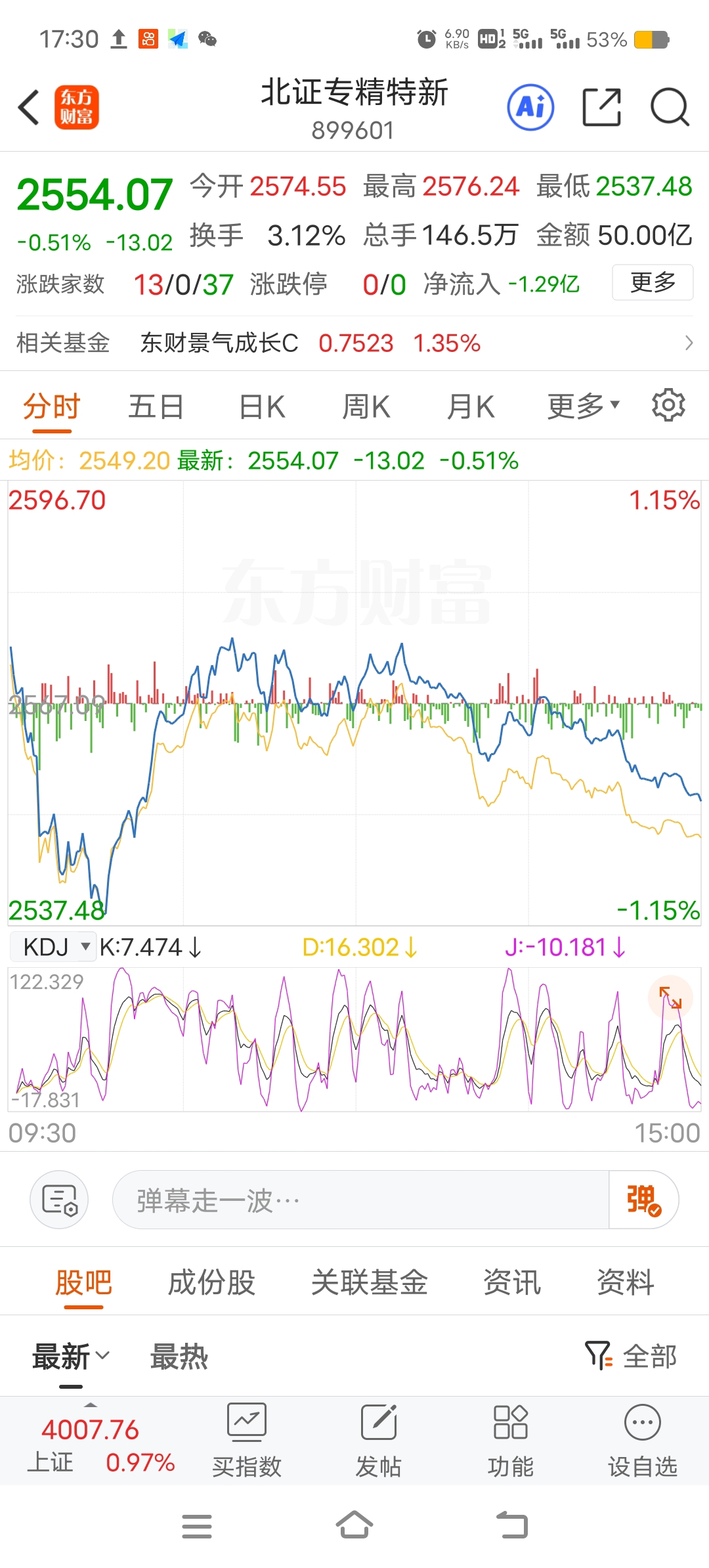 $北证50(SZ899050)$ 北证真的快跌破1个点了看这个