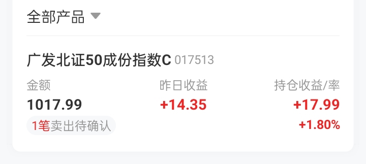 $北证50(SZ899050)$ 还好昨天此基金申请卖了,今天晚上6点前成交,要不然好不容易赚的一口粥钱连此基金15块钱的交易费都不够