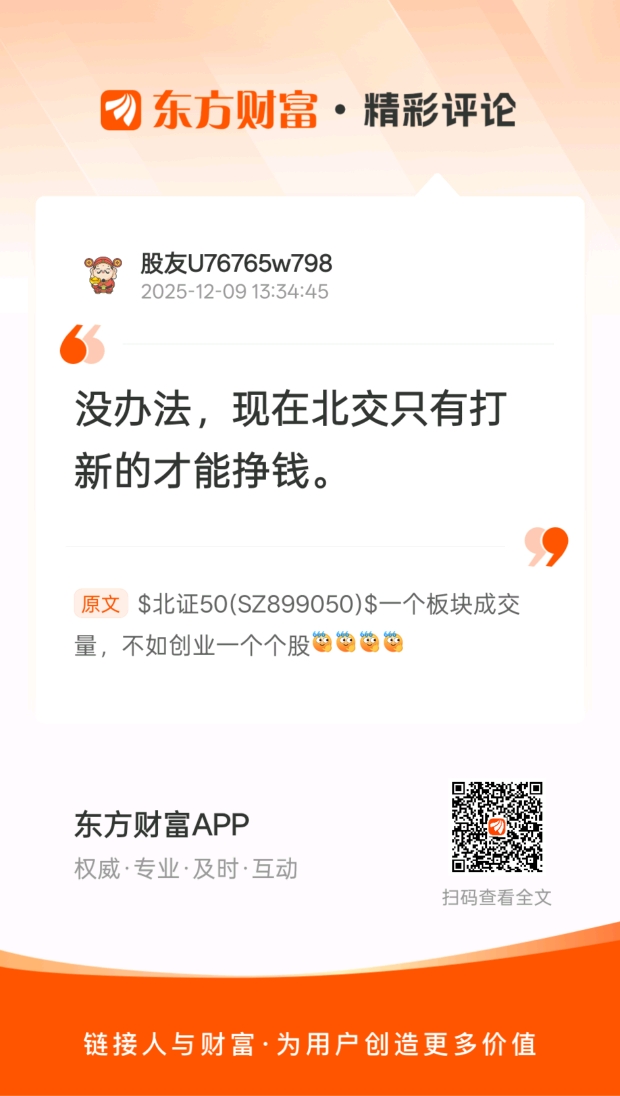 原来如此//@股友U76765w798 :没办法,现在北交只有打新的才能挣钱。