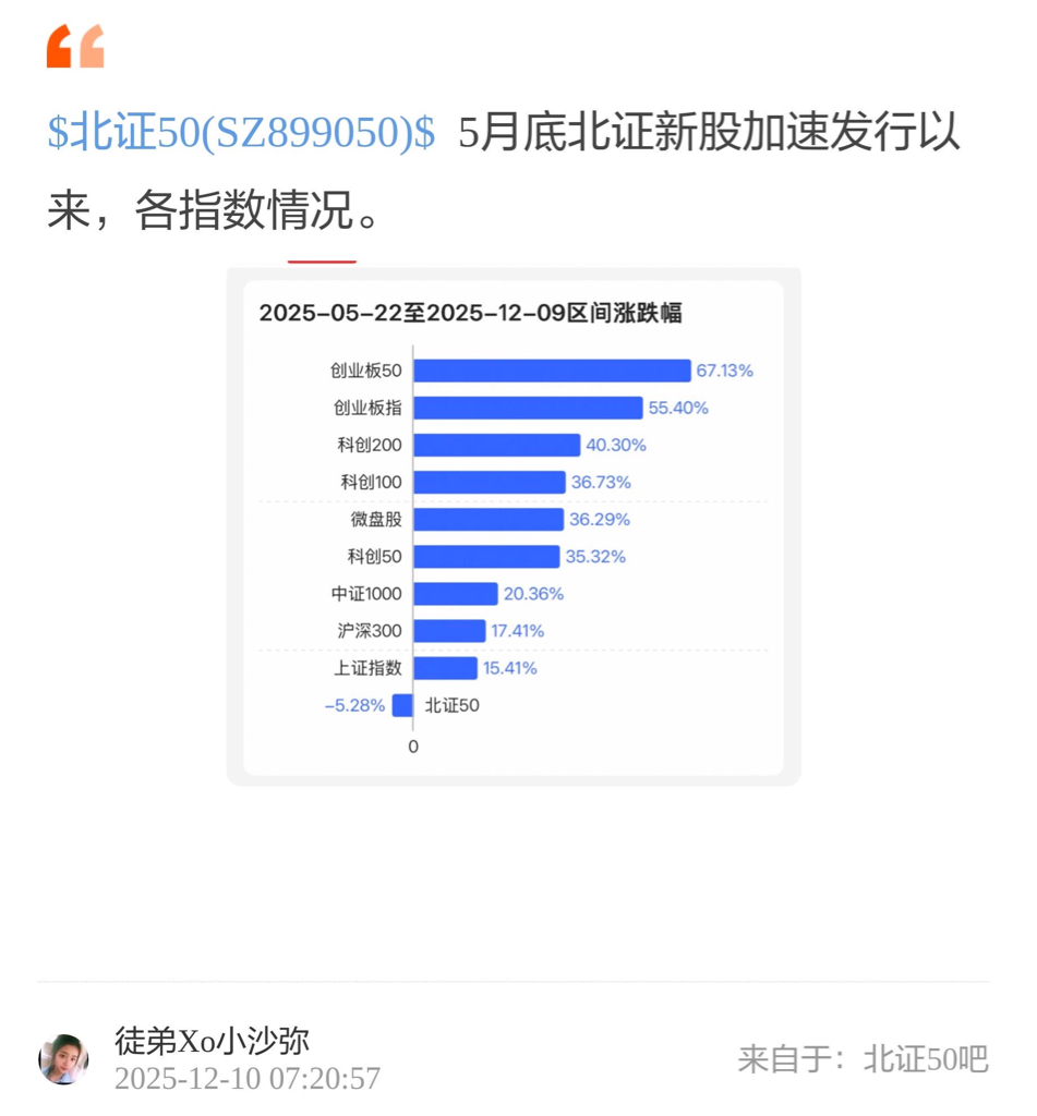 每个北交所新股中签的基本就是那些400万以上申购的人,大约10万人左右,这些人垄断了新股发行,一年大约获取超过银行存款200亿以上的超额收益,这些钱都是从二级市场抽取的资金。还有90%左右陪跑的申购者几乎不可能中签,永远为这10万人贡献碎股。这10万人利益集团为了巩固他们的套利收益,不断打压提议市值配售的投资者并散播市值配售摇号可能作假的谣言。