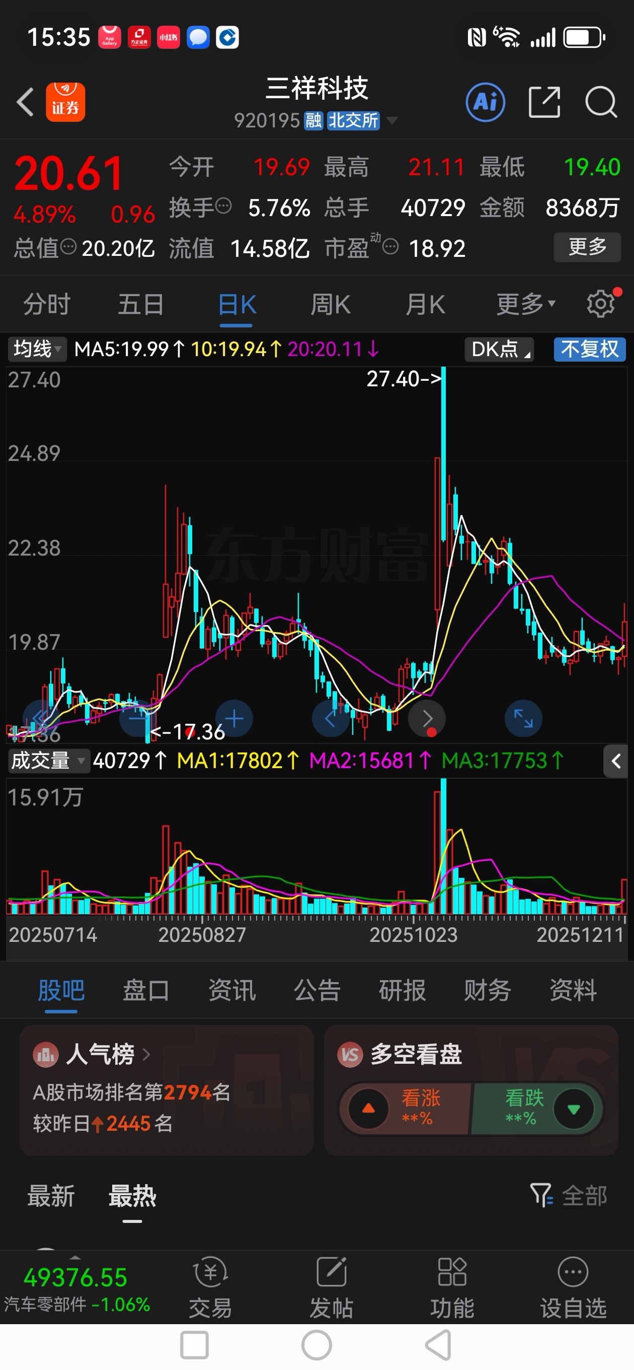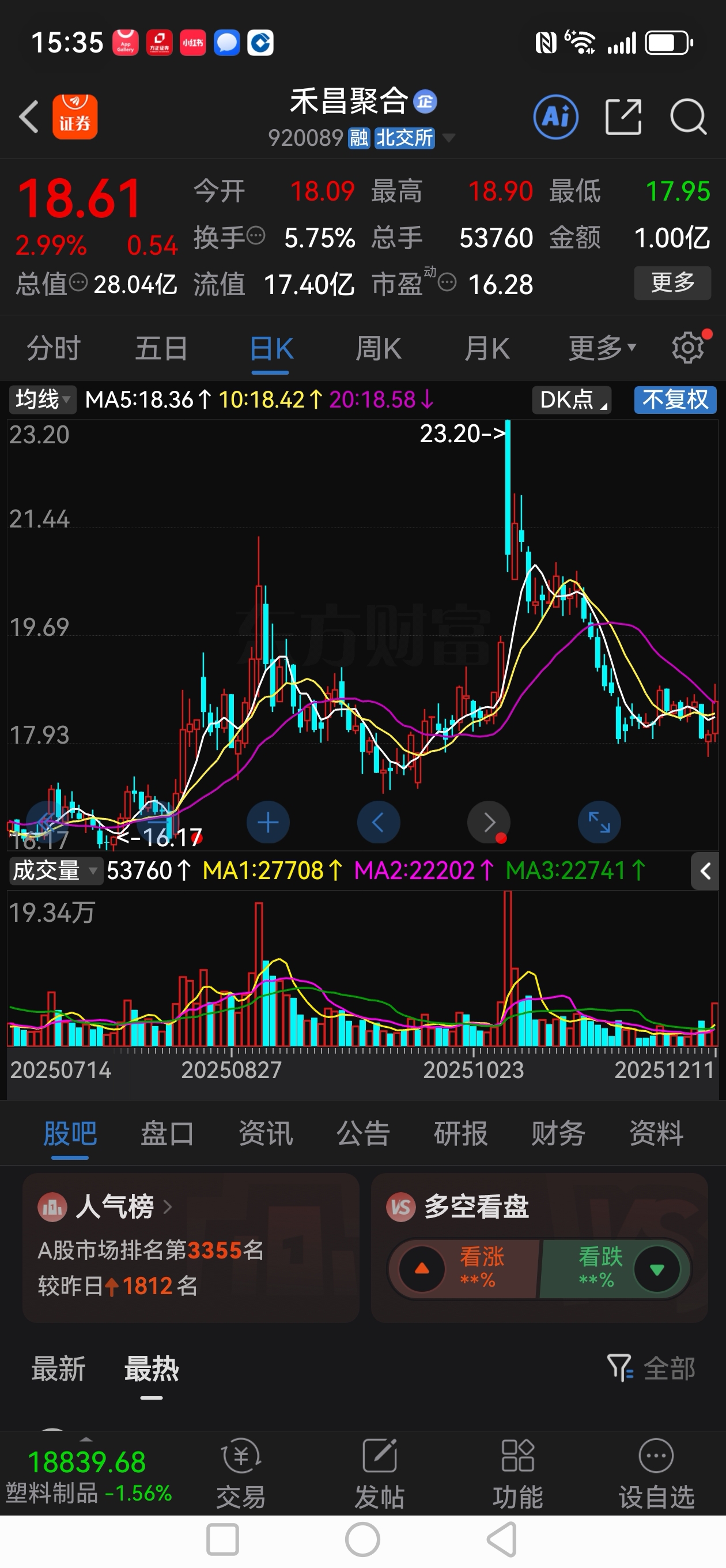 $北证50(SZ899050)$ $惠同新材(SZ920751)$ $禾昌聚合(SZ920089)$ $三祥科技(SZ920195)$ 发生什么事?推出北证50ETF?市值申购新股?减少入市门槛?超跌反弹?个人看好高业绩禾昌聚合与三祥科技!逐步低吸不追高!没大炒的票,退一步明年公布业绩卖出!好股是涨得慢但稳定!个人策略不推荐股票。
