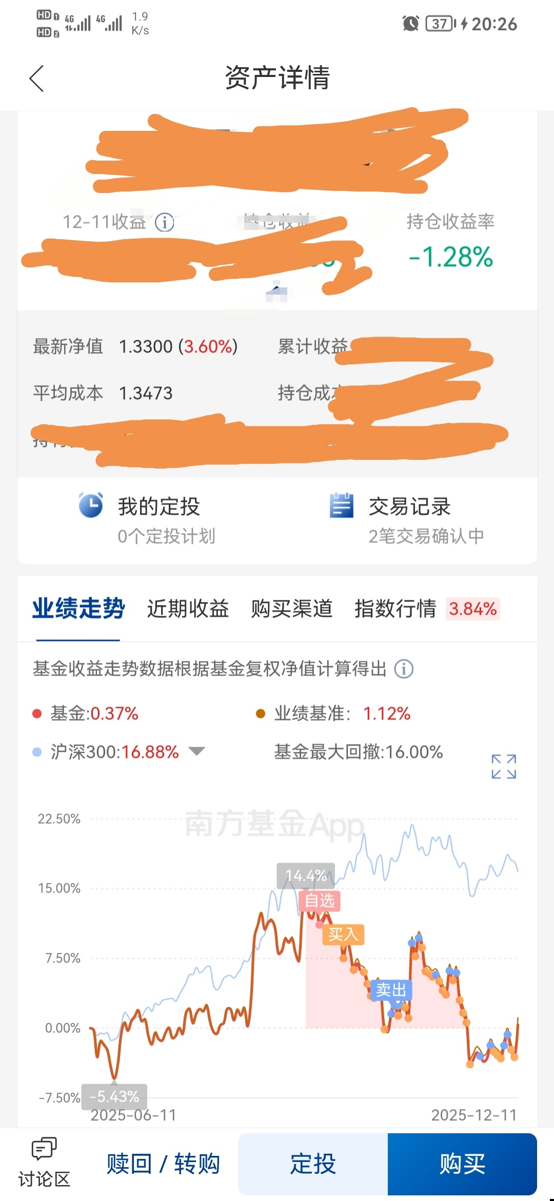 依然没有回本,自己是基民,9月中旬在南方基金重新减仓的。三个月了,经历两次冲顶,