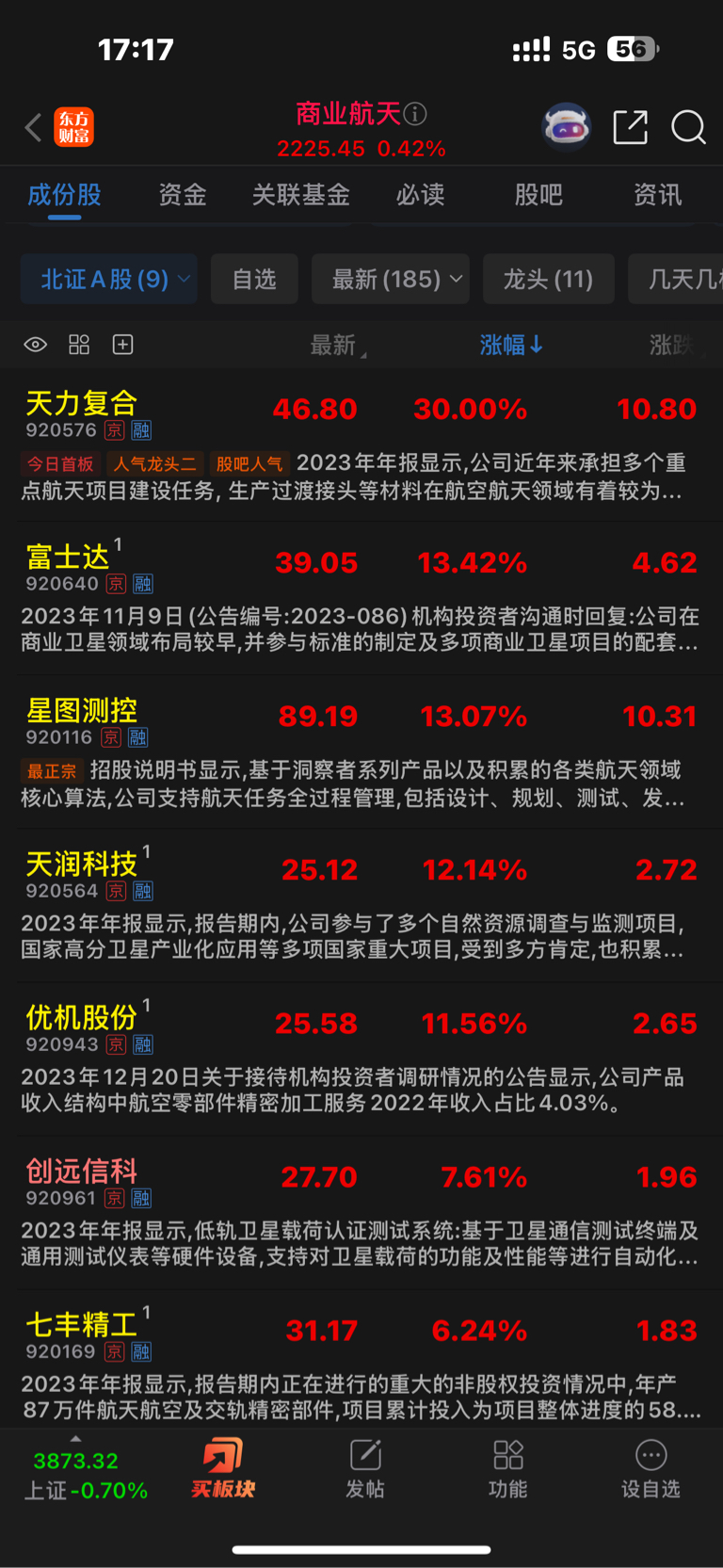 北交所商业航天霸屏了,明天创远信科继续带动北交所暴力反弹