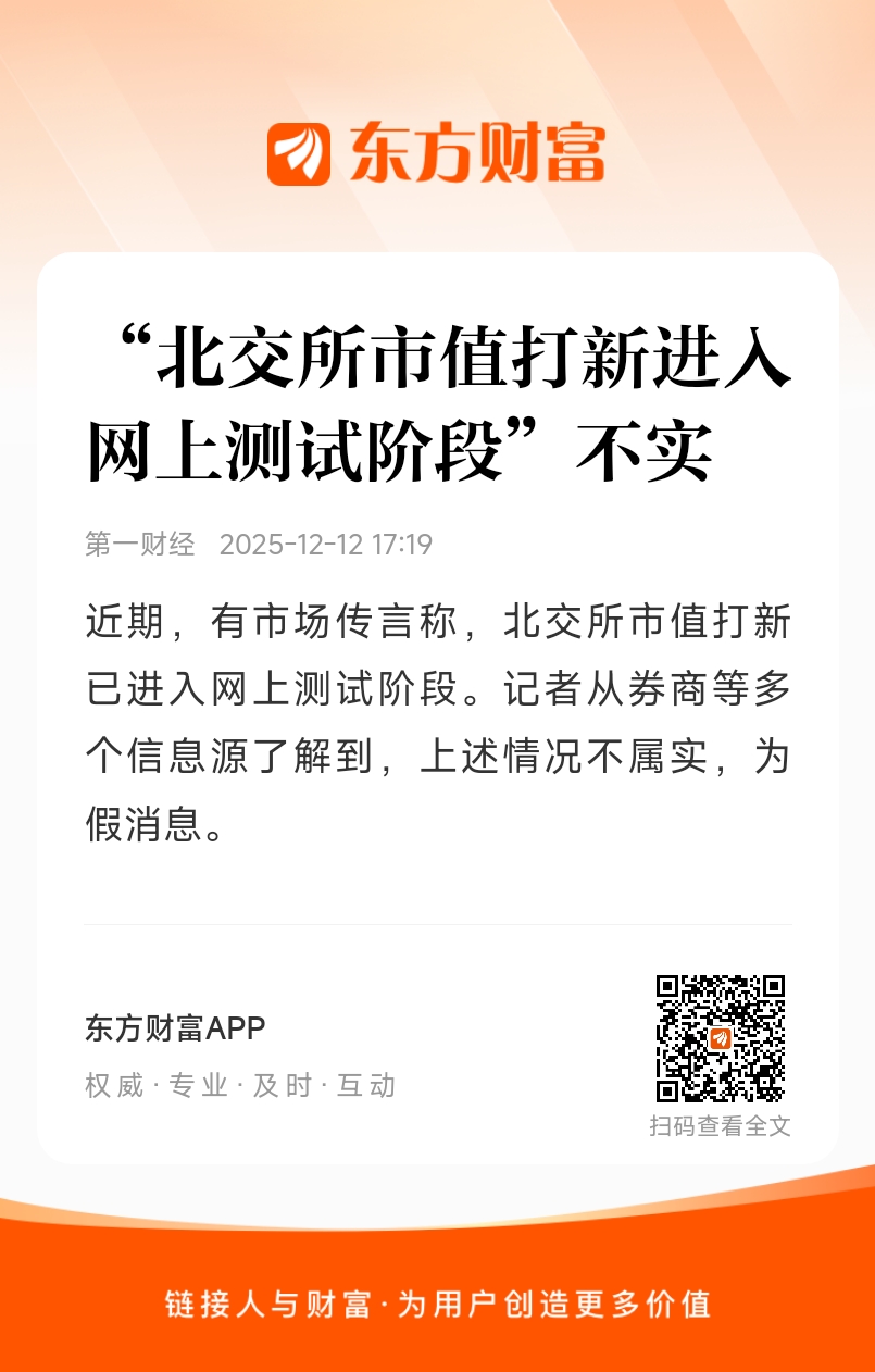 近期,有市场传言称,北交所市值打新已进入网上测试阶段。记者从券商等多个信息源了解到,上述情况不属实,为假消息。