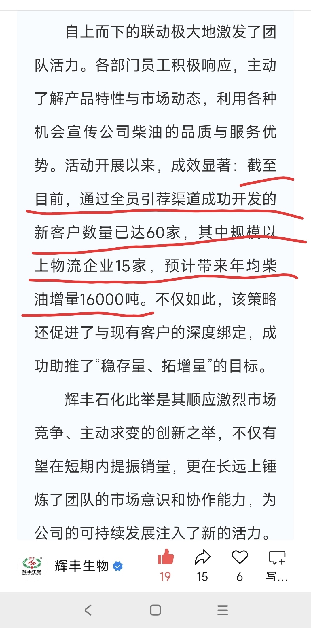 2024年主营业务收入已经达到了2.4亿,今年新增个6000万毫无压力,能百旺小分子肥今年至少新增6000万营收,还有辉丰石化的柴油销售至少新增一个亿的营收