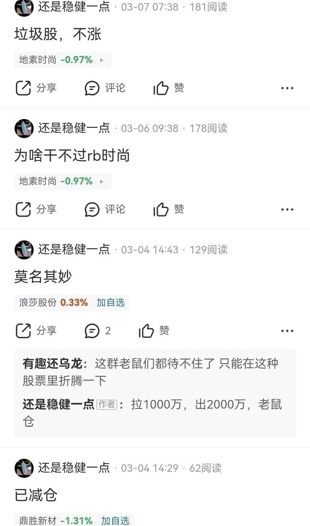 $深港通服装纺织(SZ983041)$ $地素时尚(SH603587)$ 扩内需提振消费,消费股的业绩只会越来越好,绩优企业消费龙头至少三十倍估值,年利润稳定至少三亿以上,还有三十五亿现金资产,百亿以下市值低估,中长线季线底部至少几倍涨幅,卖在季线底部十元附近唱空攻击人的资金北向资金入场最后买入机会,股票回购注销大利好,相对于服装板块百分之五十左右补涨