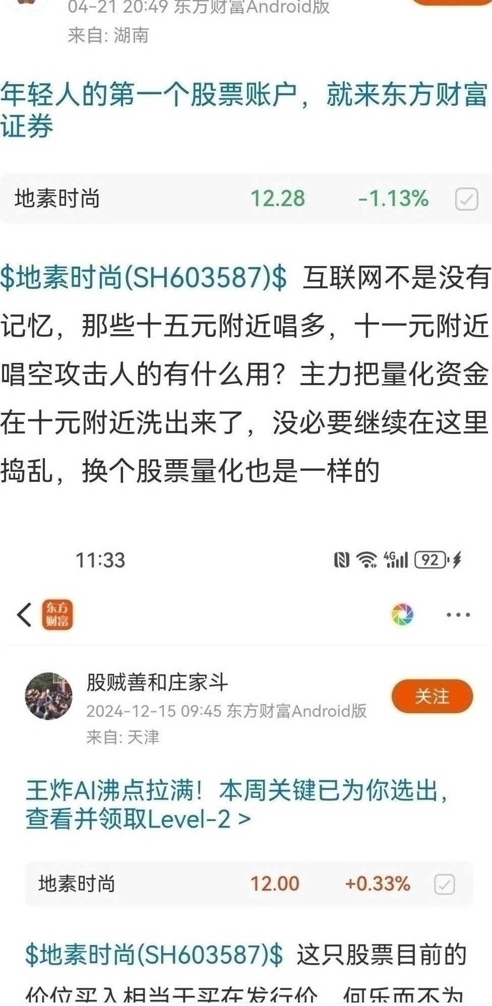 $深港通服装纺织(SZ983041)$ $地素时尚(SH603587)$ 季线大底中长线至少几倍,周线上涨趋势今年至少会翻倍,底部唱空攻击人没有意义,股票有股票走势结构趋势,刚注册的丁洋也是股贼善和庄家斗,底部唱空破坏投资环境坚决抵制打击这种行为